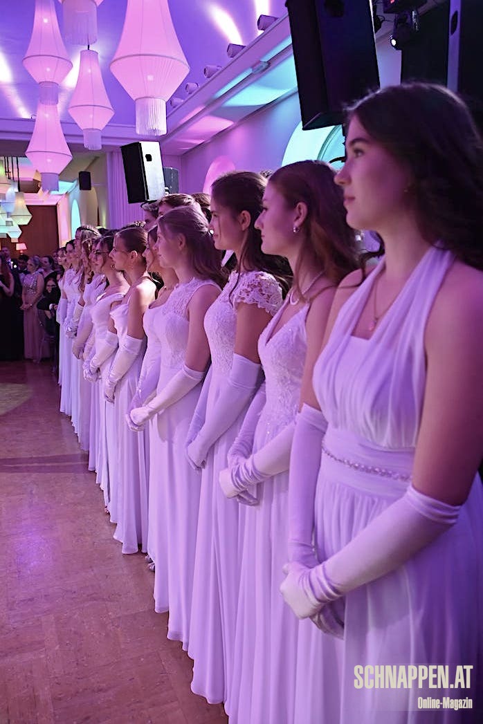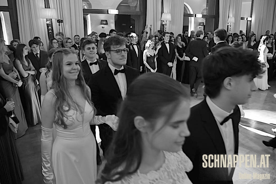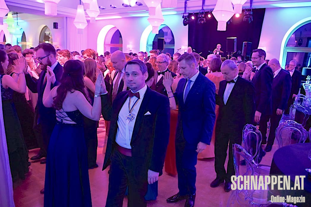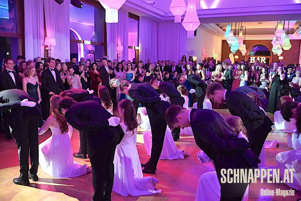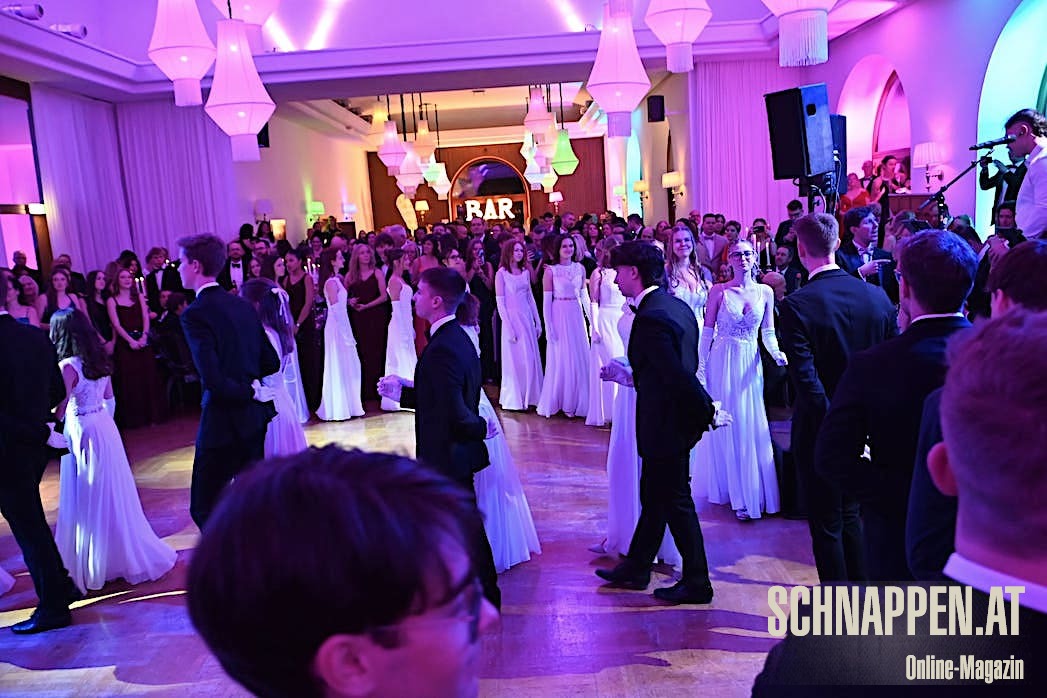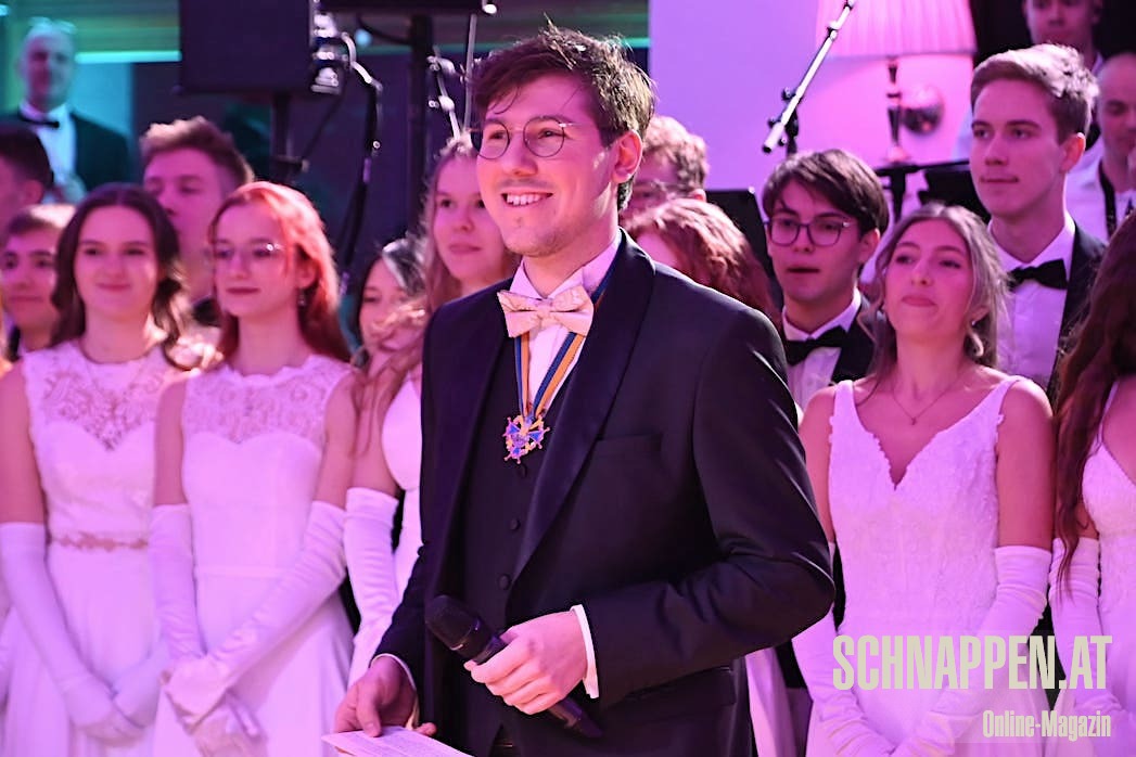 Die Balleröffnung durch die DebütantInnen der Bad Vöslauer Tanzschule Dobner ging nach dem traditionell-klassischen Einzug recht modern übers Parkett. Nach der Eröffnungschoreographie zum Taylor Swift-Song "The Fate of Ophelia" überraschten die DebütantInnen mit dem Eröffnungswalzer zu "Die with a smile" von Lady Gaga/Bruno Mars.