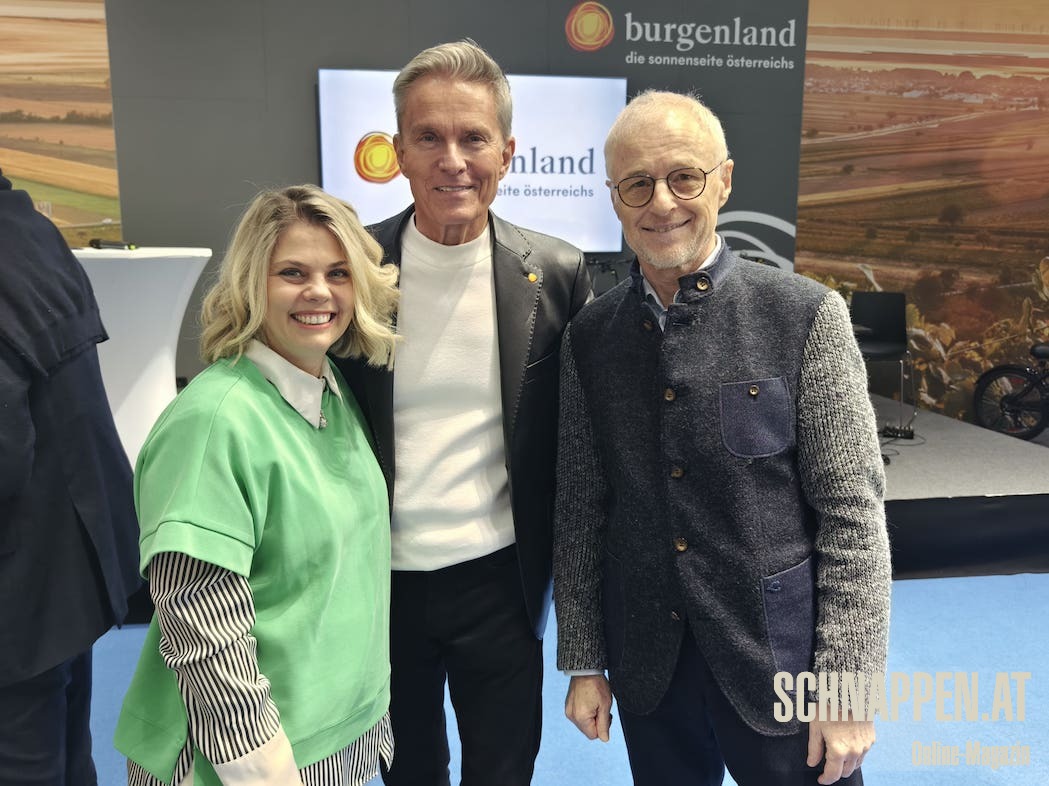 Auch prominente Gäste wie Daniel Serafin, Intendant der Oper im Steinbruch, und Dietmar Posteiner, Festspieldirektor der Seefestspiele Mörbisch, waren am ersten Messetag am Burgenland-Stand, um für ihre kulturellen Veranstaltungen in der Region zu werben.