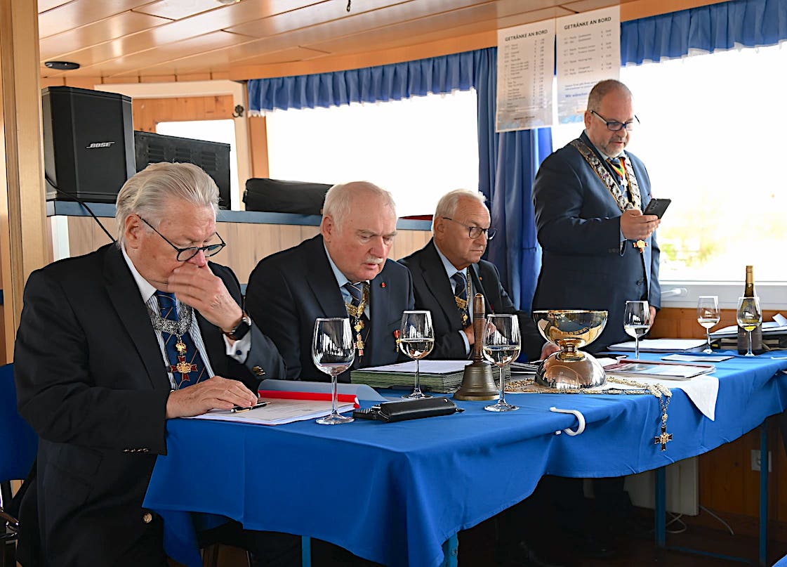 Der Europäische Weinritterorden lud Anfang April 2025 zur Generalversammlung auf dem Schiff der Drescher Line im Stadthafen Rust ein.