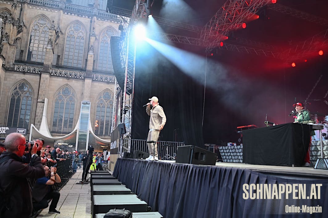 Im Bild: Das Bo, der deutsche Rapper mit Schmiddlfinga bei "Klassik am Dom" 2025 in Linz.