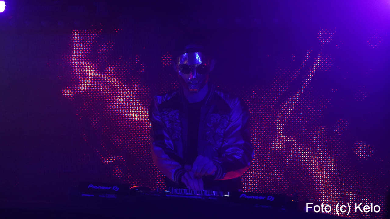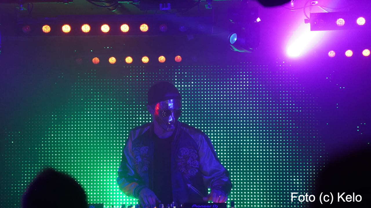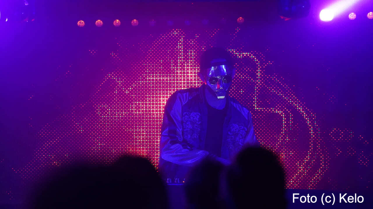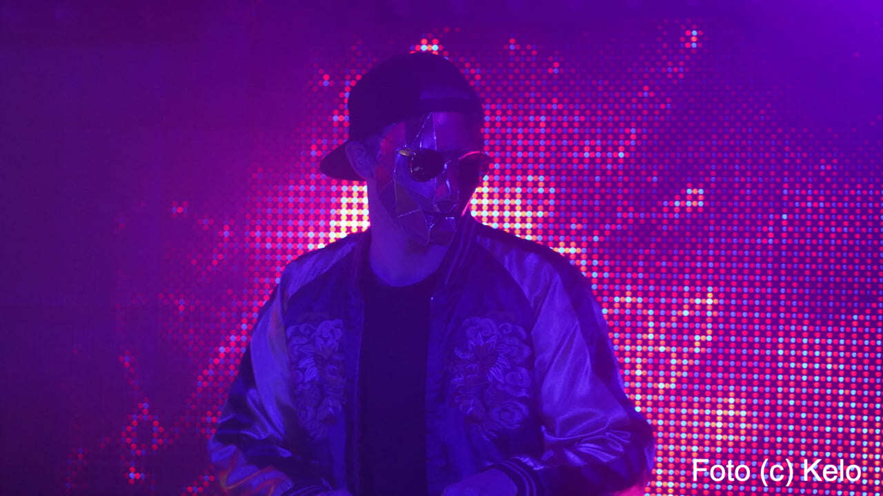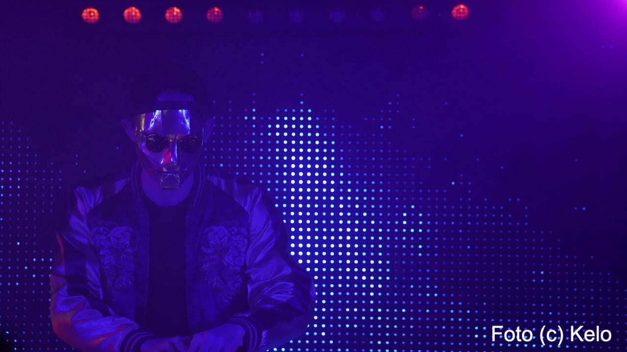 Der deutsche Produzent elektronischer Musik trug bei seinem Wien-Auftritt eine glänzend goldene Maske mit harten Kanten, eine runde Brille, eine Back-to-front-Kappe und, wie sollte es anders sein, ein Disco-Satin-Jacket.