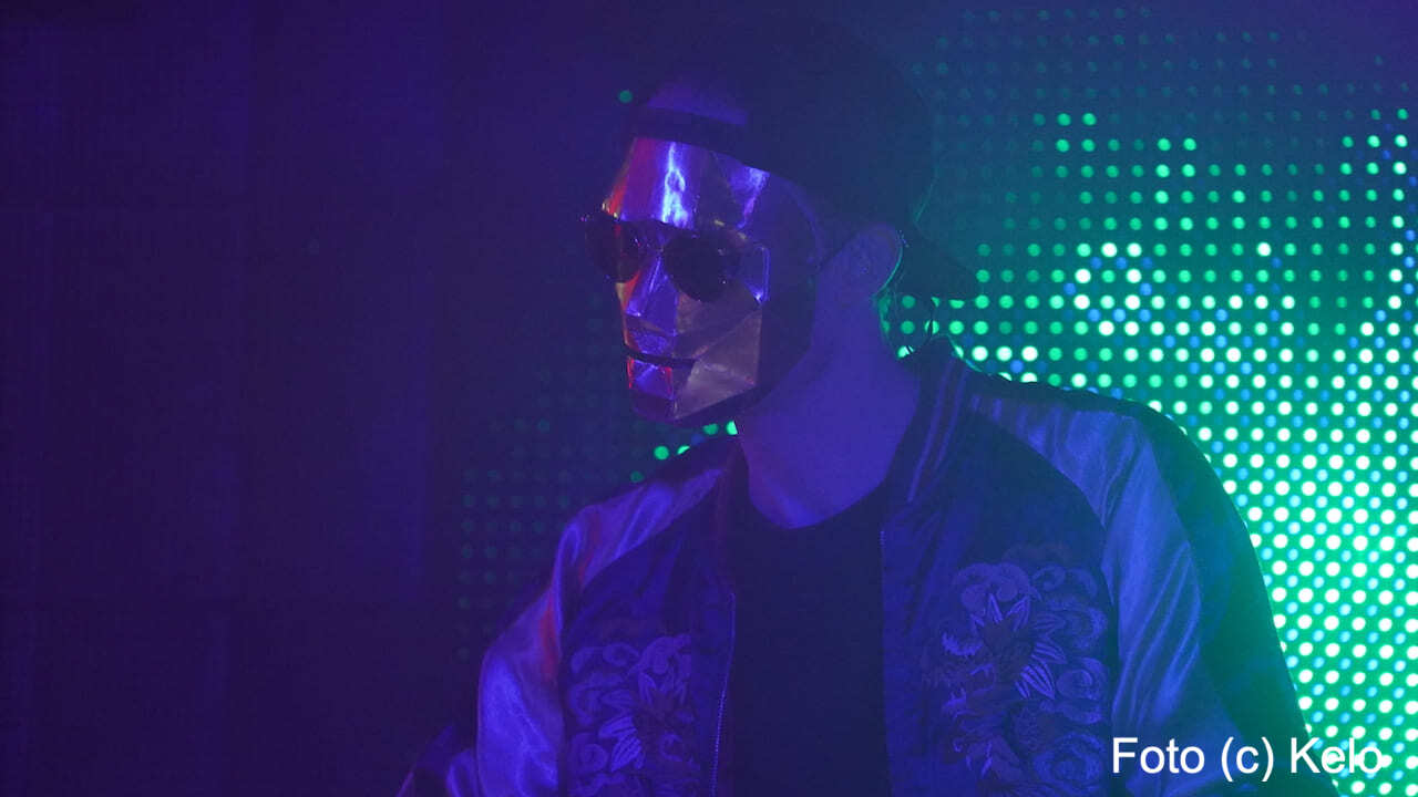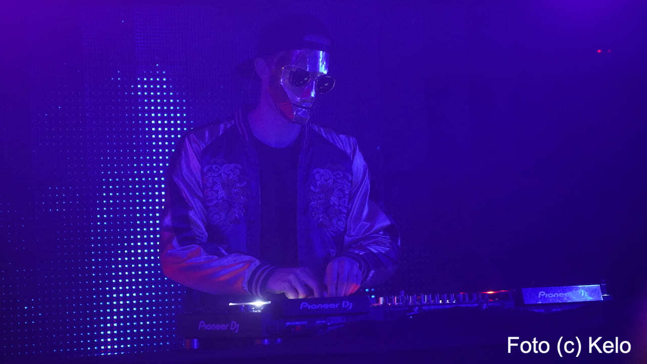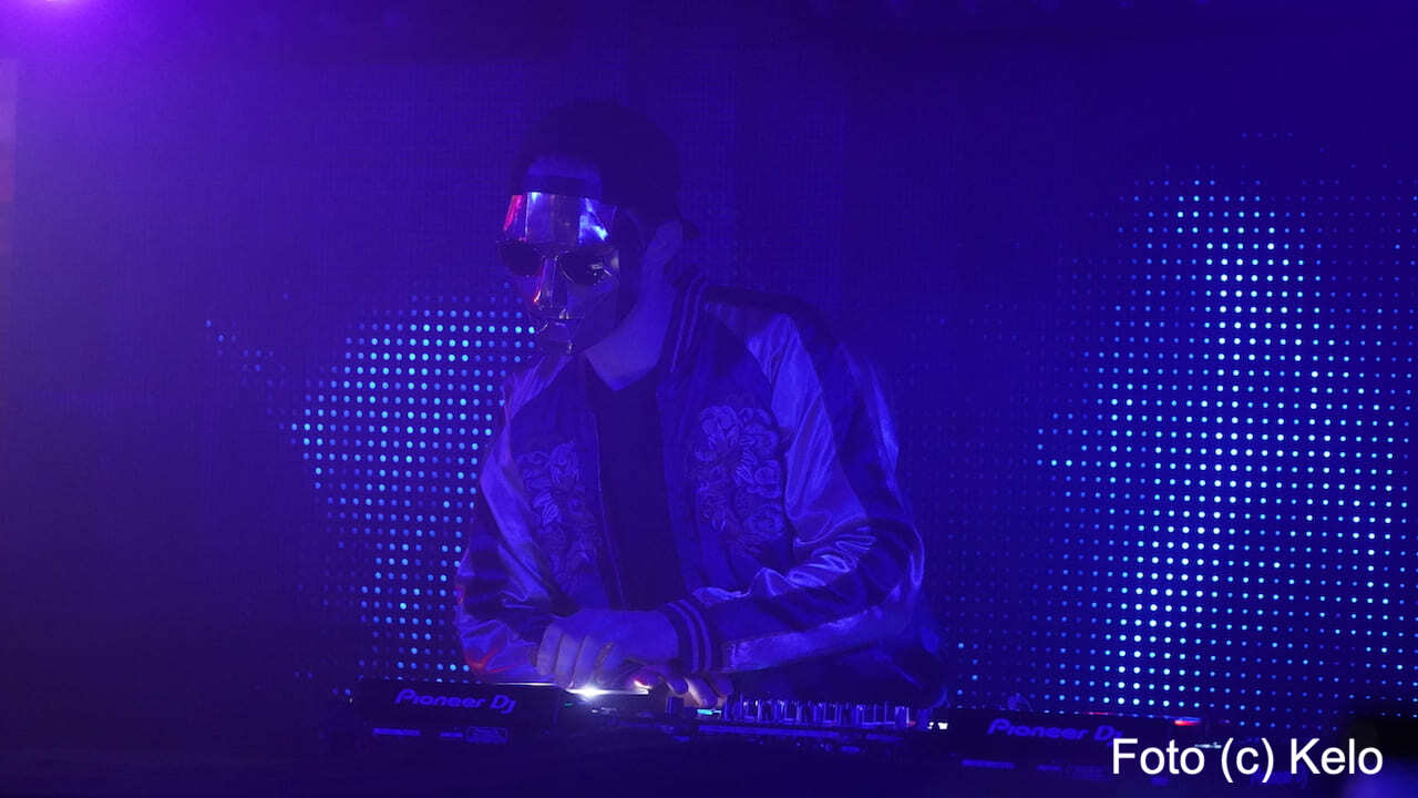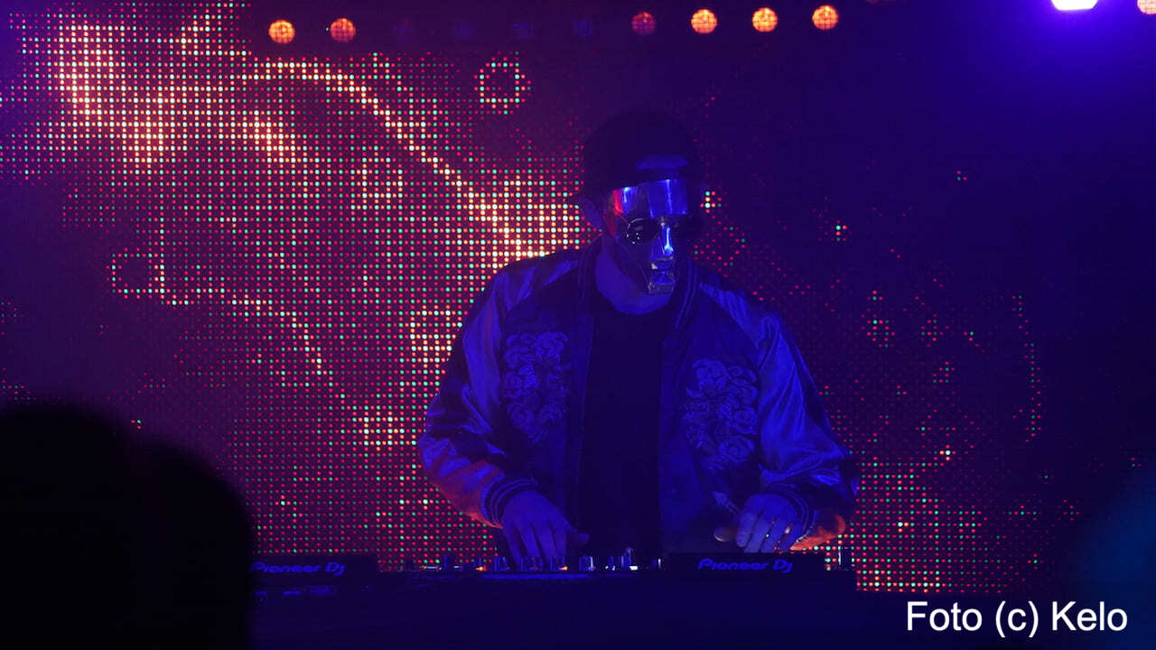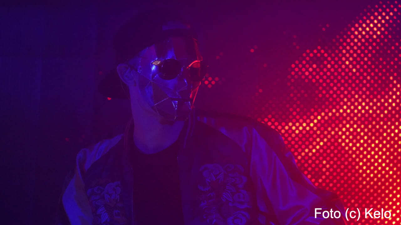Der deutsche Produzent elektronischer Musik trug bei seinem Wien-Auftritt eine glänzend goldene Maske mit harten Kanten, eine runde Brille, eine Back-to-front-Kappe und, wie sollte es anders sein, ein Disco-Satin-Jacket.