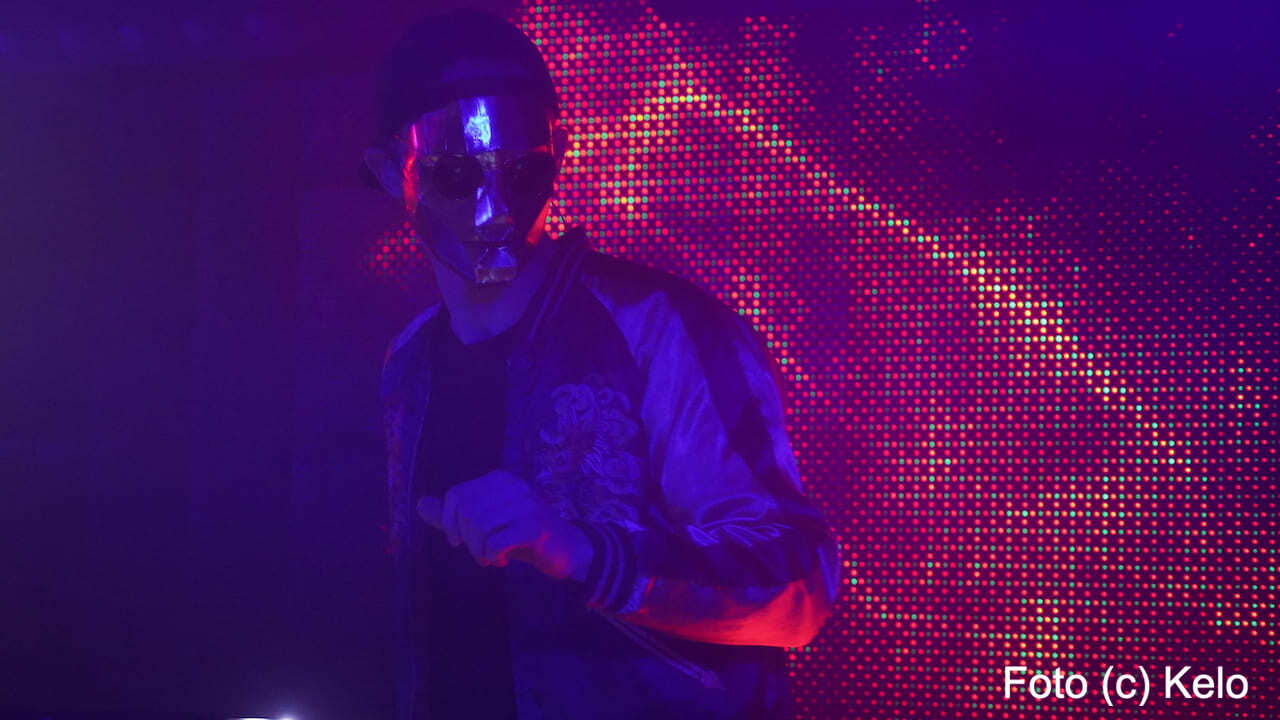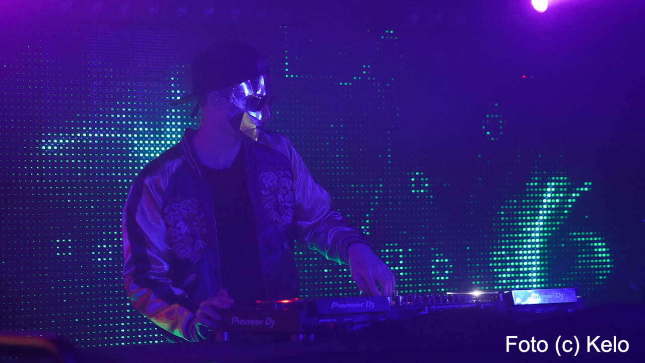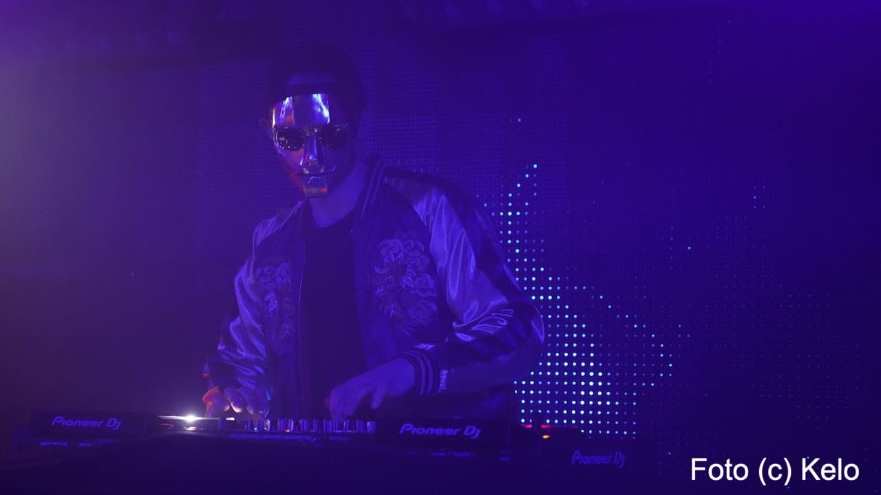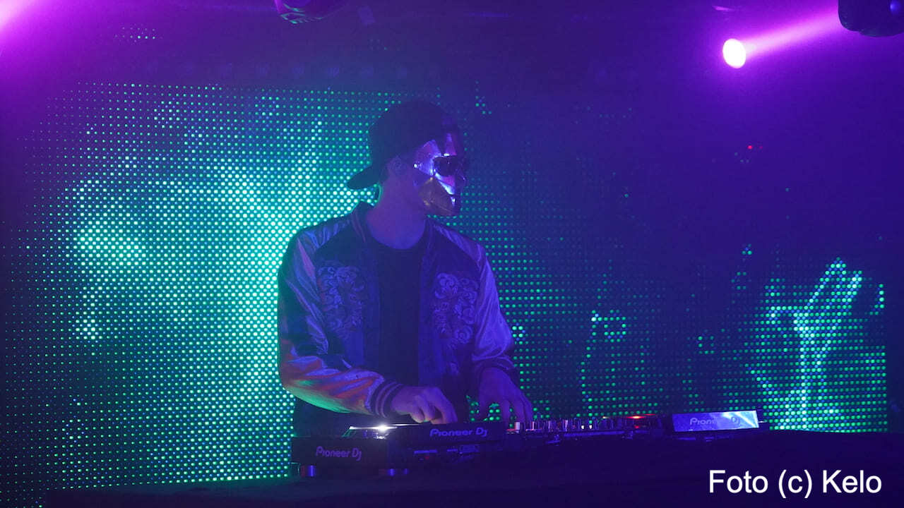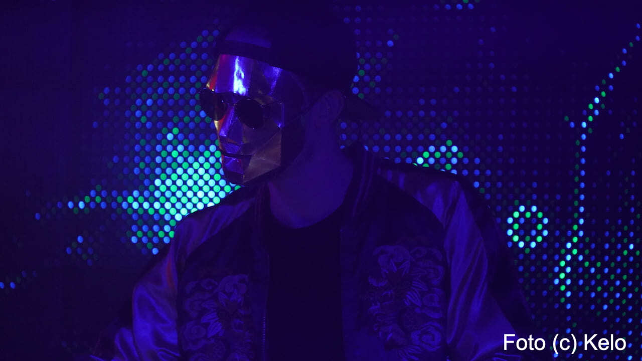 Der deutsche Produzent elektronischer Musik trug bei seinem Wien-Auftritt eine glänzend goldene Maske mit harten Kanten, eine runde Brille, eine Back-to-front-Kappe und, wie sollte es anders sein, ein Disco-Satin-Jacket.