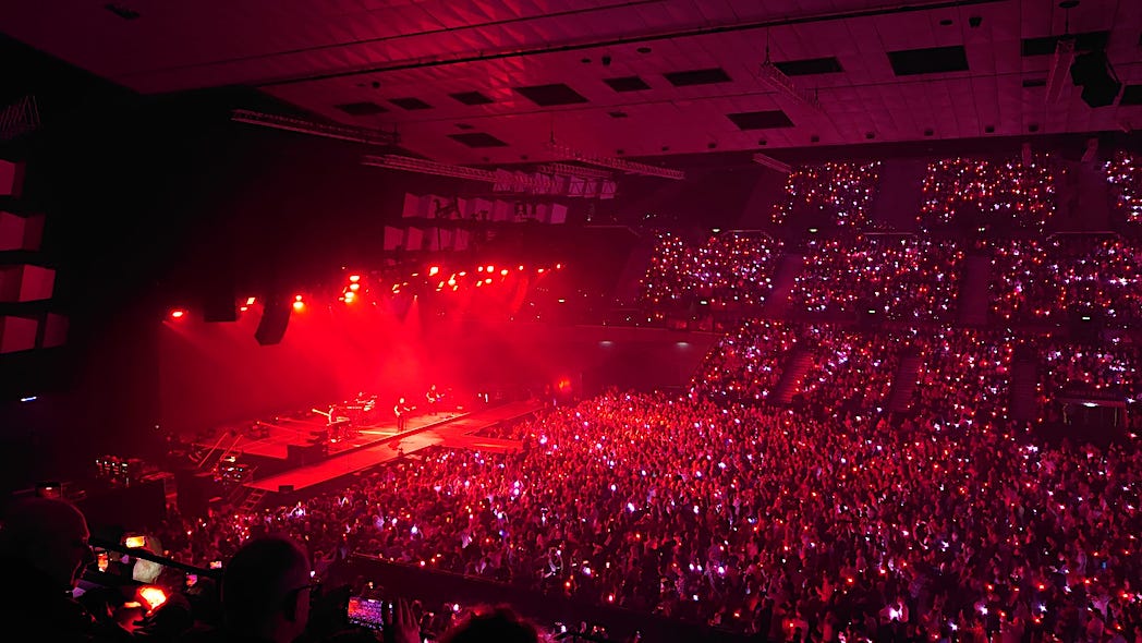 Bei "please forgive me" leuchteten die Armbänder der ZuschauerInnen wieder stimmungsvoll im Saal, bis hoch am 2. Rang unter dem Dach. Das Publikum sang lautstark den Refrain mit..