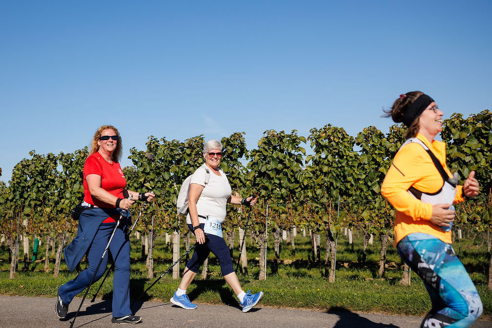 Etwa 17 Genussstationen bei renommierten Weingütern boten edle Tropfen, regionale Köstlichkeiten und herzliche Gastfreundschaft. Zahlreiche ZuschauerInnen feuerten die großteils kostümierten SportlerInnen begeistert an und trugen zur fröhlichen Atmosphäre bei.