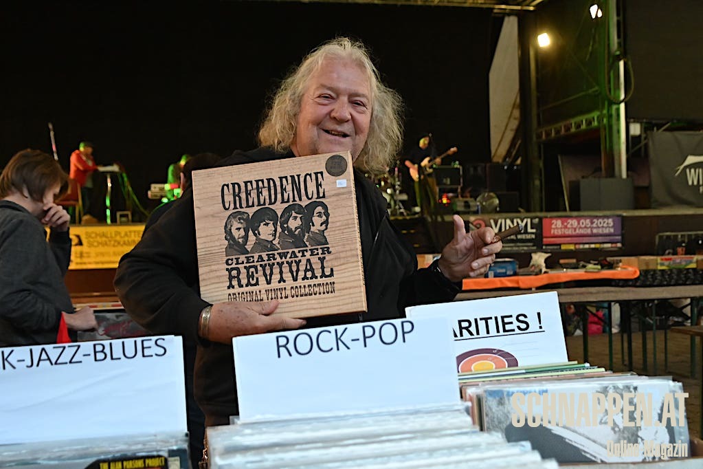 Bei der Vinyl-Messe am 28. und 29.5.2025, bei der die privaten und gewerblichen Aussteller im großen Festivalzelt ihre Verkaufsstände aufbauten, konnten MusikliebhaberInnen einige Sammlerstücke und Vinyl-Raritäten ergattern.