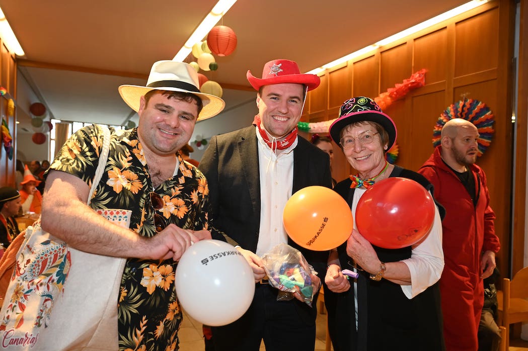 In der Pfarre St. Josef verspeisten die kleinen Besucherinnen etwa 500 Faschingskrapfen, die von der Pfarre sowie Stadtrat Michael Capek gespendet wurden. Kaplan Mark Eylitz mischte sich im lässigen Urlaubs-Outfit unter die Menge.