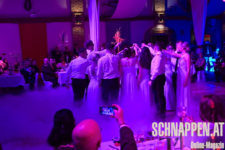 Durch die, mit viel Liebe zum Detail ausgewählte Deko, die riesigen Blumenvasen und Kerzenleuchter auf den Tischen, die weißen Tücher, die vom Plafond und den Wänden hingen und durch die schummrige Beleuchtung entstand in der Feuerwehrscheune eine gemütlich, idyllische und gleichzeitig feierliche Atmosphäre. Getanzt und gefeiert wurde am Ball der Freiwilligen Feuerwehr Unterwaltersdorf bis in die frühen Morgenstunden.