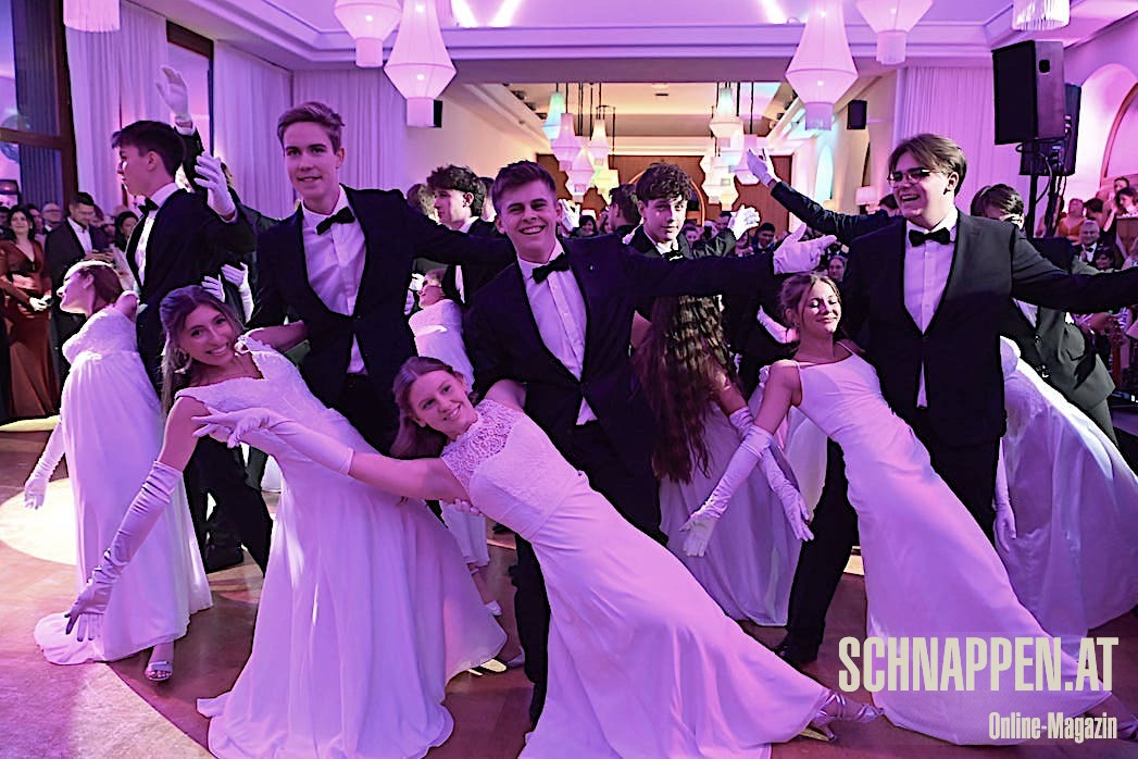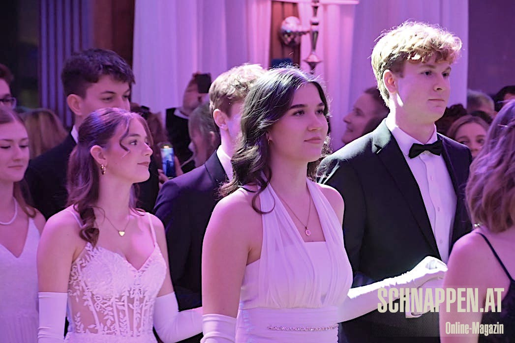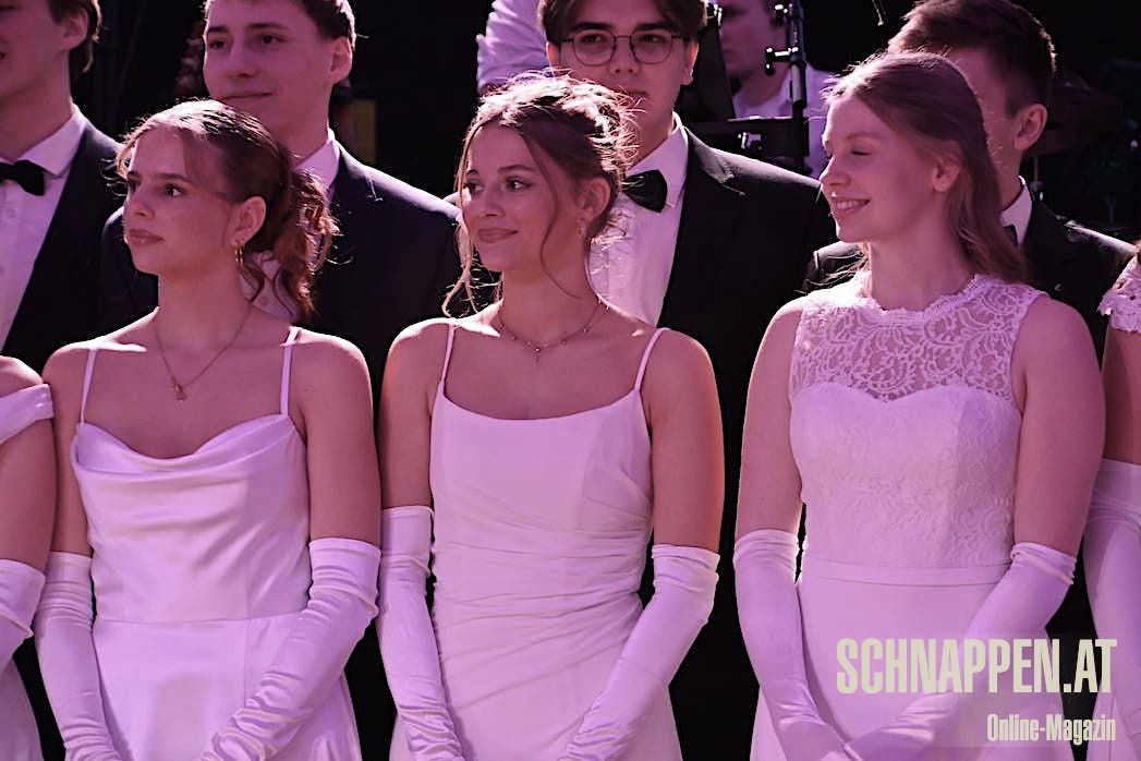 Die Balleröffnung durch die DebütantInnen der Bad Vöslauer Tanzschule Dobner ging nach dem traditionell-klassischen Einzug recht modern übers Parkett. Nach der Eröffnungschoreographie zum Taylor Swift-Song "The Fate of Ophelia" überraschten die DebütantInnen mit dem Eröffnungswalzer zu "Die with a smile" von Lady Gaga/Bruno Mars.