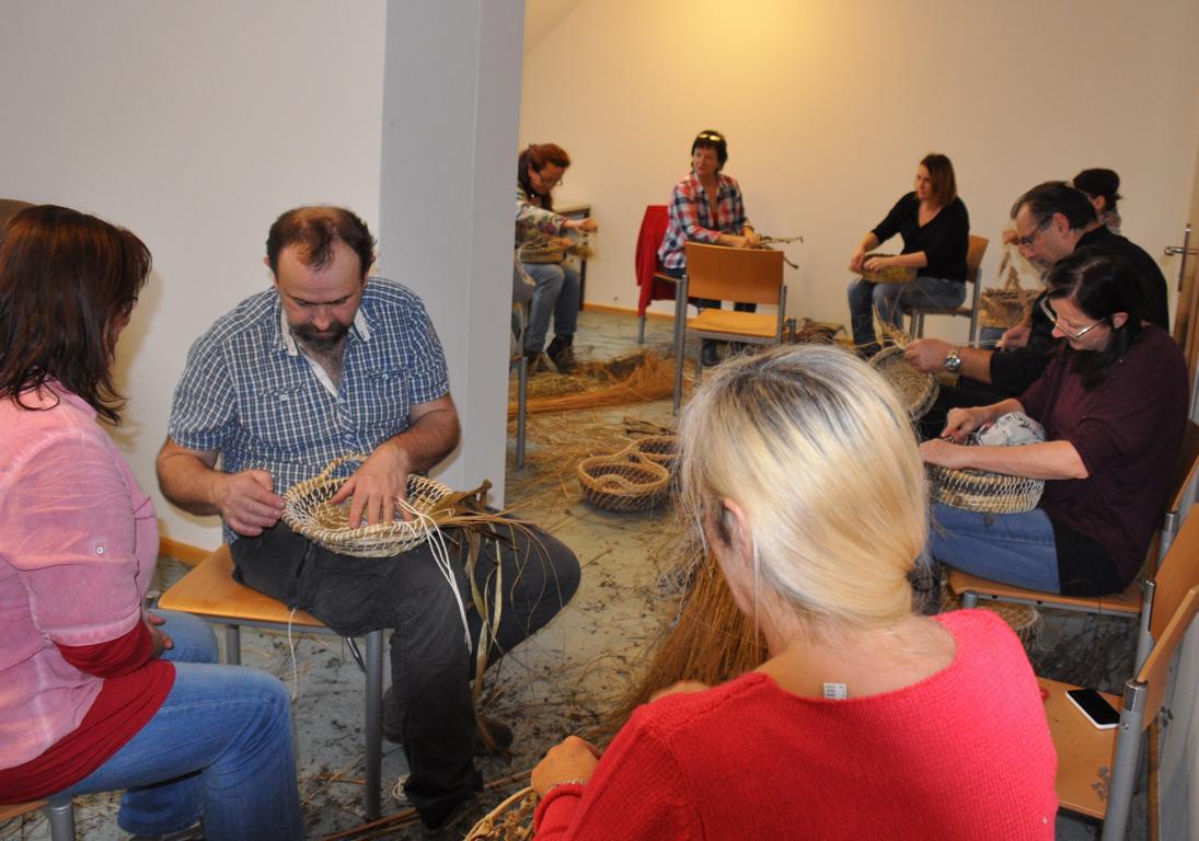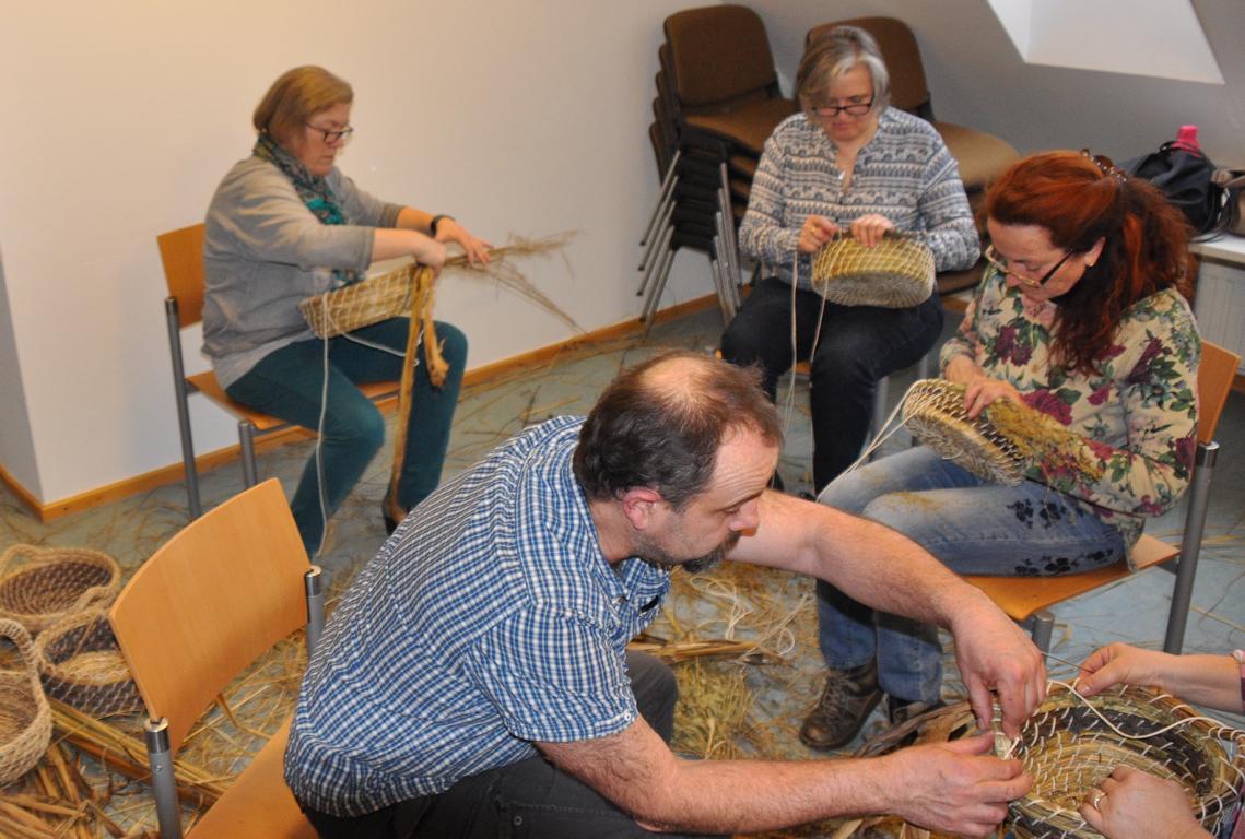 Stimmung im Korbwickelkurs im Gemeindeamt in Nitscha