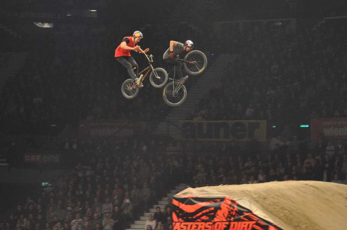 Unglaublich! Das Roll In, von dem die BMX- und Mountainbiker absprangen, war 12 Meter hoch und die Freestyle-Motocrosser schafften eine Sprungweite von 21 Metern. Und, als es aus den Lautsprechern in der Wiener Stadthalle, in die 500 Kubikmeter Erde als M.O.D-Untergrund gebaggert wurden, in enormer Lautstärke schallte "Masters of What?!", antwortete das Publikum schreiend mit "Masters of Dirt!". 60 Athlethen aus 18 Ländern, darunter auch ein 10-jähriger Fahrer, der über die große Rampe sprang, ließen von 16. bis 18. März 2018 die Wiener Fans miterleben, welch draufgängerische und riskiofreudig wirkende Stunts auf zwei Rädern möglich sind. Mehr über