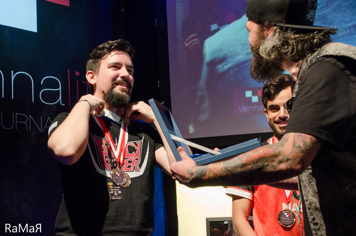 Bei dem Spiel "Tekken 7" gewann der Grieche Nivek 750 Euro und freute sich mit seinem Trainingsteam über diesen Gewinn besonders, weil er schon lange Zeit für den Sprung in die Profi E-Sport Szene trainiert hatte.