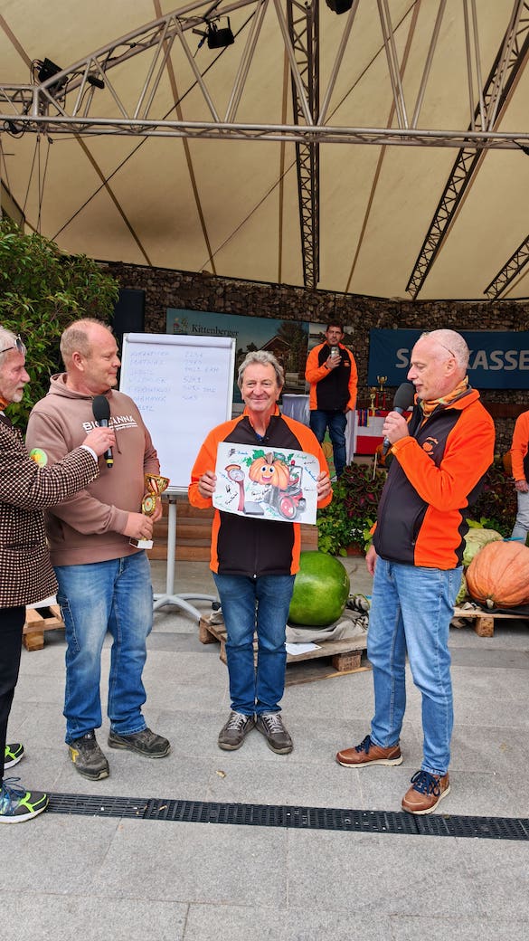 Ein besonderer Moment der Veranstaltung war die Ehrung von Horst Jöbstl aus Kärnten, der heuer bereits zum 25. Mal an der Staatsmeisterschaft der Riesenkürbisse teilnahm.