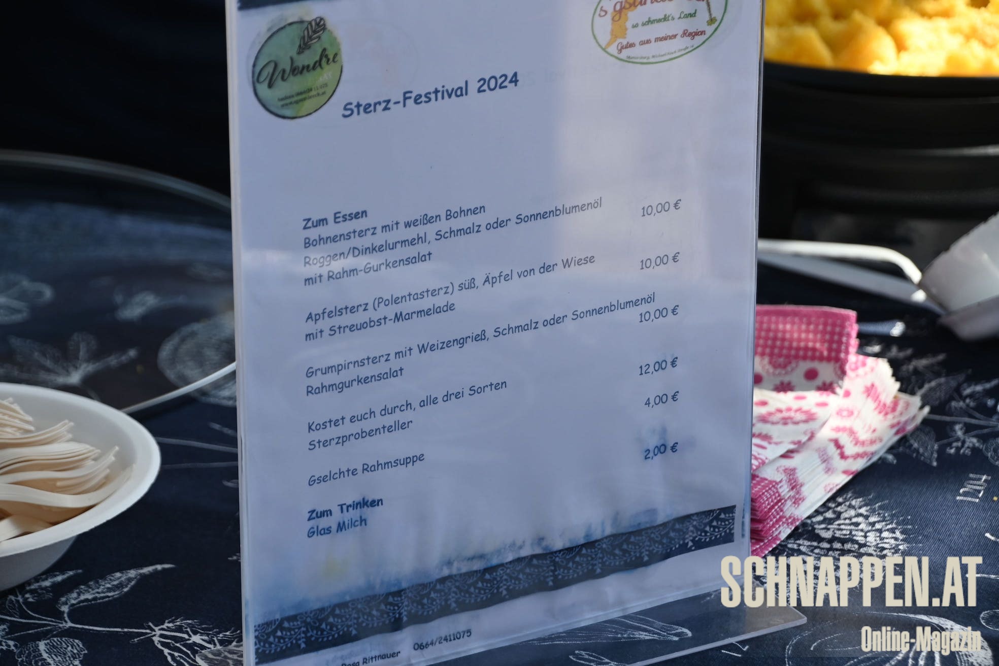 Vom Bohnensterz bis zum Erdäpfelsterz mit Grammeln, dem Maissterz, dem Erbsensterz und dem Fisolensterz - das waren nur einige der köstlichen burgenländischen Sterzköstlichkeiten, die beim Sterzfestival am 7. September 2024 in Purbach angeboten wurden.