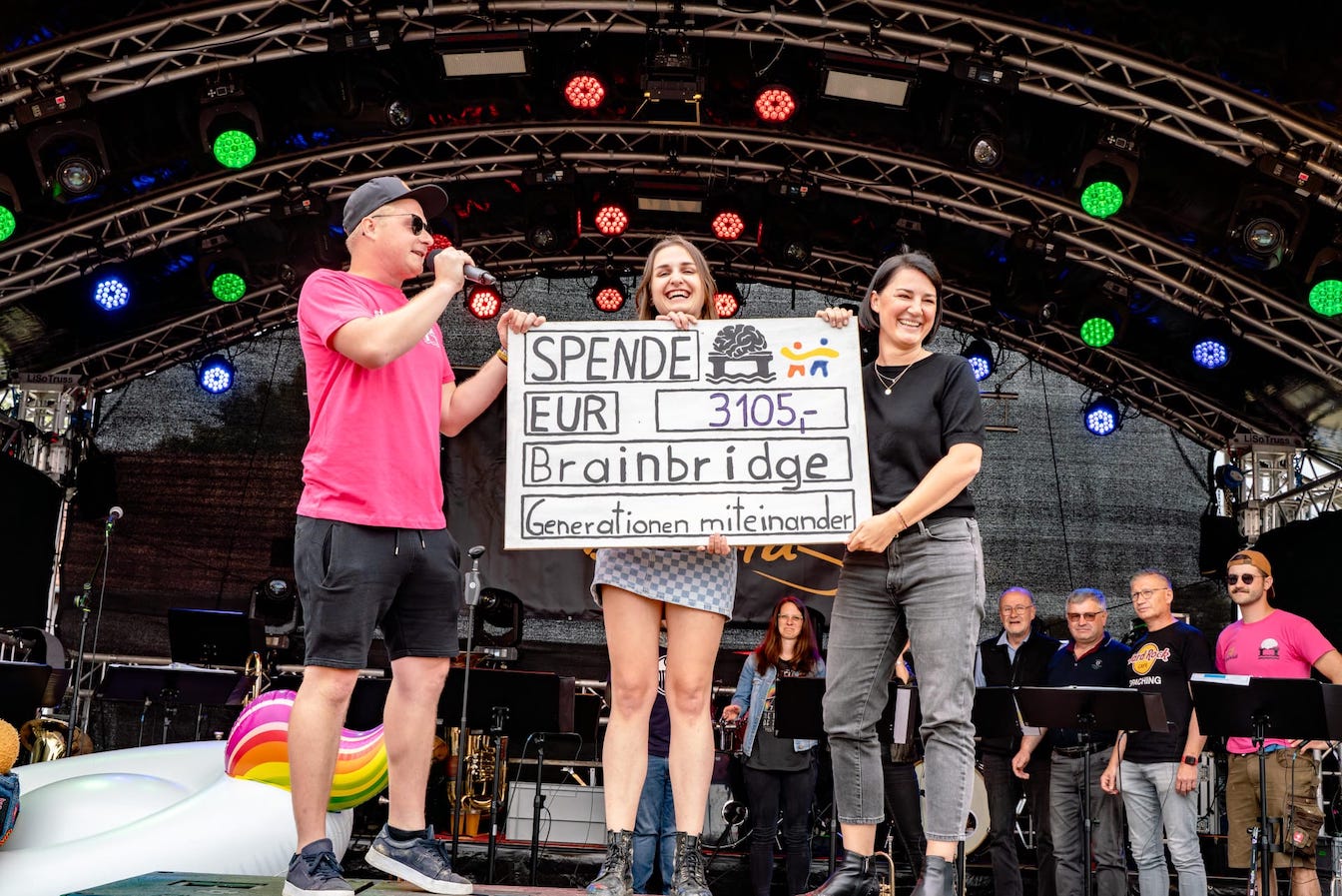 Die Veranstalter vom Kulturverein Pink Danger überreichten beim Festival 2025 auch einen Spendenscheck für das Projekt "Generation miteinander", bei dem älteren Menschen ein aktives soziales Leben ermöglicht werden soll.