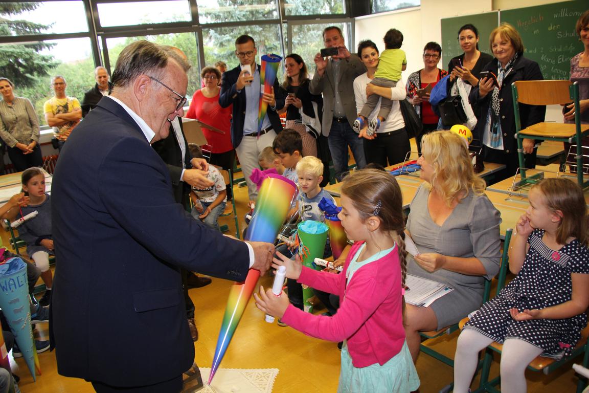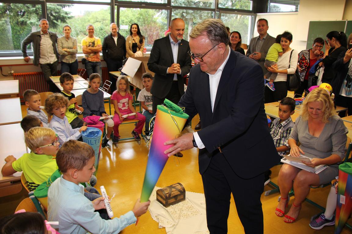 "Für diese Kinder ist der erste Schultag natürlich mit massiven Veränderungen verbunden. Dieser Übergang ist aber durch die KindergartenpädagogInnen aus dem Bildungsgarten, durch die Unterstützung der Eltern sowie durch die PadagogInnen in den Volksschulen bestens vorbereitet", so Landeshauptmann Hans Niessl, der am ersten Schultag Schutüten an die Taferlklassler in der Volksschule in Schützen am Gebirge verteilte.