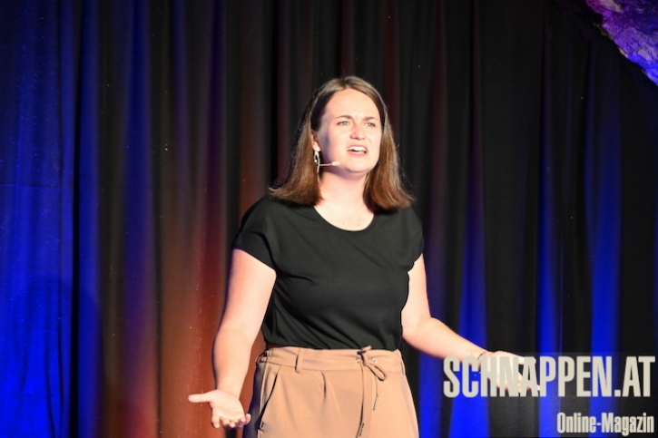 - Sonja Pikart 2023 in Oggau und ein Ausschnitt aus dem Kabarettprogramm - hier