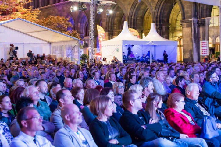 "Weiberwellness" heißt das Kabarettprogramm, mit dem Lydia Prenner-Kasper am 26. Juli 2017 auf der Bühne beim Wiener Kabarettfestival im Arkadenhof im Rathaus und brachte das Publikum mit ihren köstlichen Sagern zum Lachen.