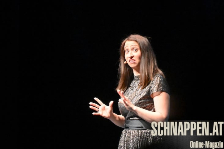 Die Kabarettistin, die allein schon mit ihrer Mimik die Menschen zum Lachen bringt, überraschte die BesucherInnen der Benefizgala mit permanenten und manchmal ein bisschen "schweinigeligen" Lachpointen.