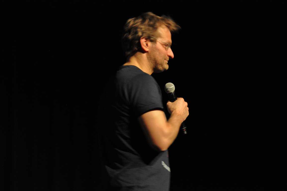 Als der Song "Celebration" aus den Lautsprechern ertönte, tanzte Andreas Ferner auf die Bühne, um sich von seinem Publikum feiern zu lassen. Kräftiger Applaus setzte ein und Andreas Ferner begrüßte die Kabarettbesucher mit "tomorrow". Das Publikum antwortete natürlich gekonnt in Schülerenglisch mit "good tomorrow".