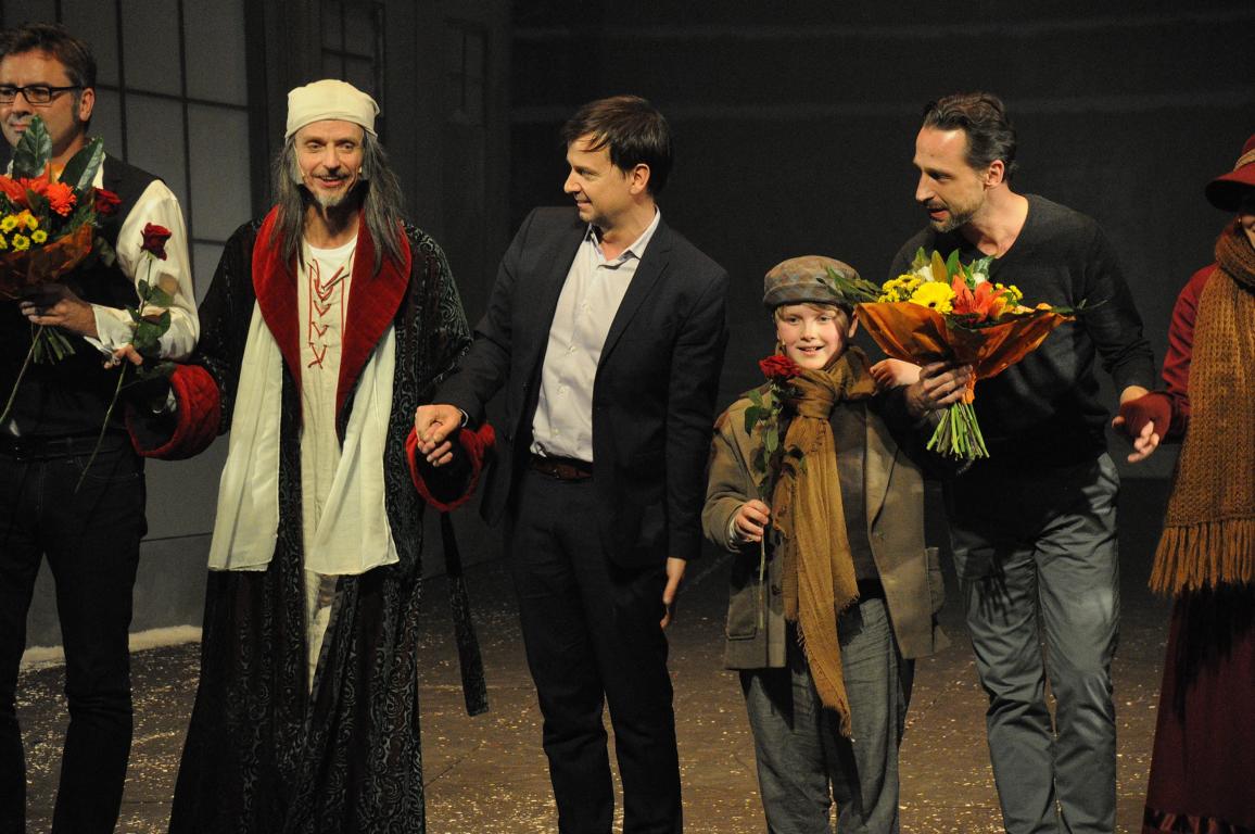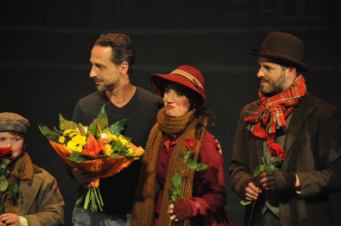 Die von Regisseur Christoph Weyers inszenierte Weihnachtsgeschichte "Scrooge" lockte besonders viele Familien ins Museumsquartier nach Wien. Umjubelt wurden neben den Darstellern der Produzent Jens Ochmann, die Choreografin Kerstin Ried, der musikalische Leiter Bela Fischer und der Komponist Michael Schanze.