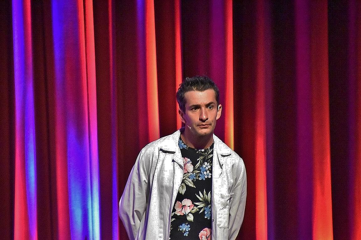 - einen Auftritt von Omar Sarsam & das Programm "Herzalarm" in der Marx Halle im Mai 2019 - hier