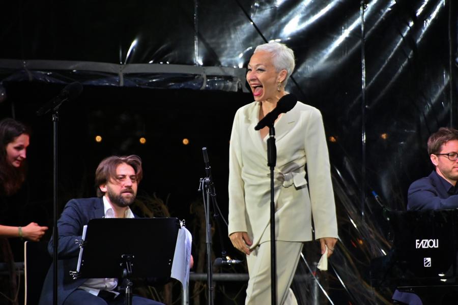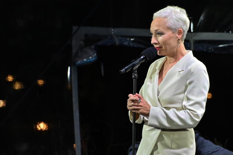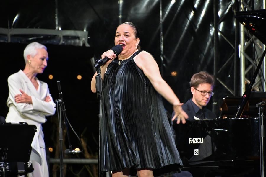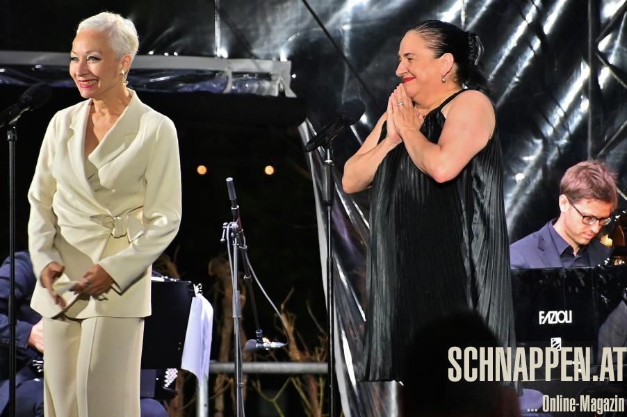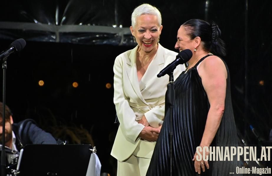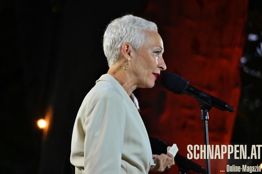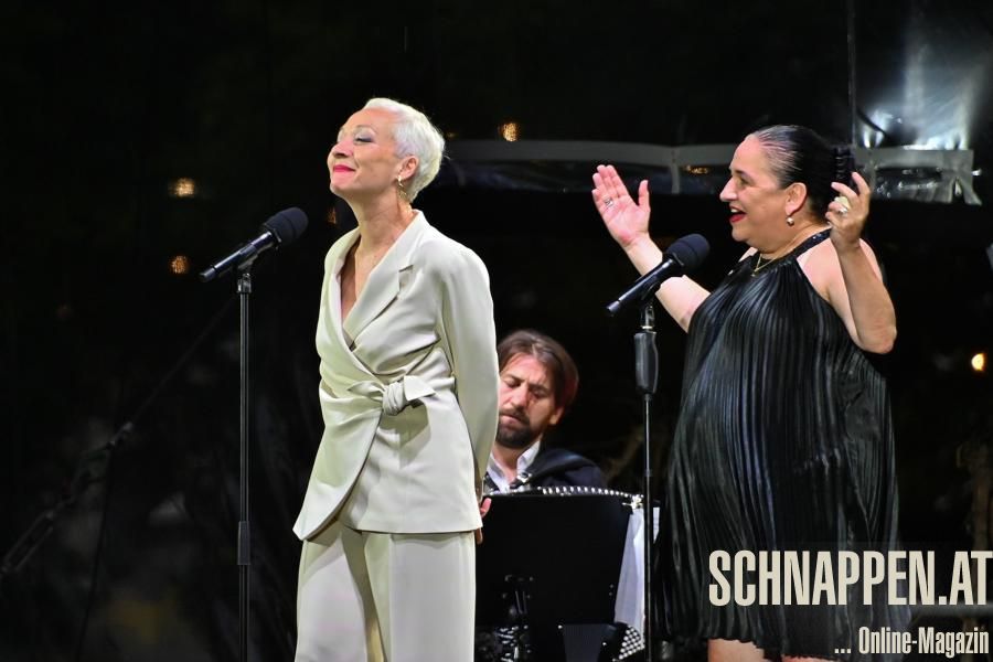 Am 14. Juli 2020 stehen die 1962 geborene deutsche Schauspielerin und Regisseurin Maria Happel und die 1961 geborene Wienerin, Schauspielerin, Sängerin und Tänzerin Sona MacDonald gemeinsam auf der Sommerbühne "Theater im Park" im Schwarzenberggarten im Oberen Belvedere in Wien (Österreich). In den Rollen der Marlene Dietrich und Edith Piaf begeistern die beiden Künstlerinnen mit "Spatz und Engel" ihr Publikum.