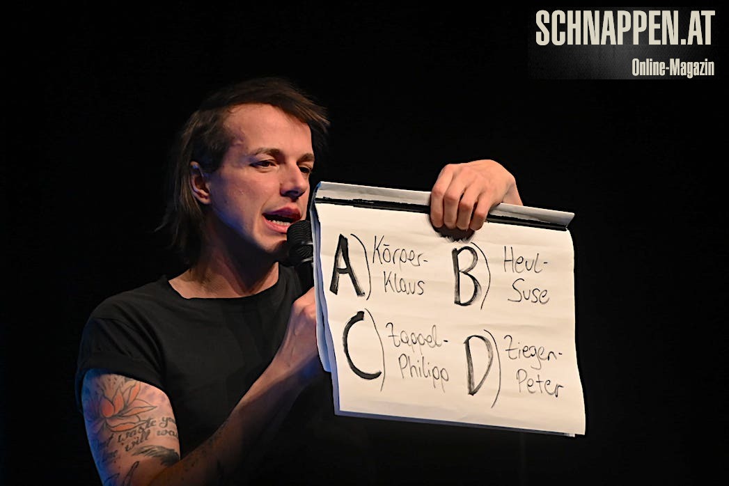 Am 16. Februar 2024 gastierte Marco Pogo mit seinem unterhaltsamen Programm "Gschichtldrucker" im Kulturzentrum Dr. Fred Sinowatz in Neufeld an der Leitha im Burgenland (Österreich).