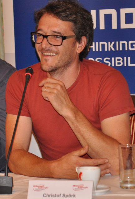 Christof Spörk aus dem Südburgenland ist Kabarettist und Musiker und erhielt 2011 den österreichischen Kabarettpreis. Die Bilder unten wurden 2013 bei der Pressekonferenz des Wiener Kabarettfestivals aufgenommen, bei dem Christof Spörk am 27.7.2013 mit seinem Programm "Edelschrott" bei den Besuchern im Wiener Rathaus sehr gut ankam - hier