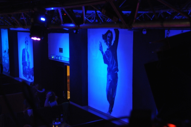 DJ Michi Graf ist übrigens auch auf einer Wand im Jazz Pub Wiesen im Burgenland (Österreich, Europa) abgebildet: tanzend und mit langem Haar.