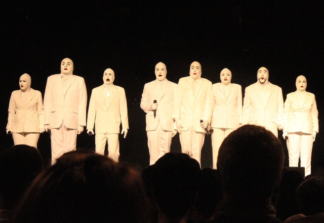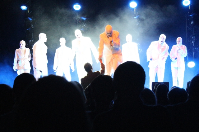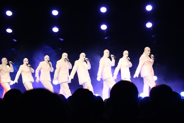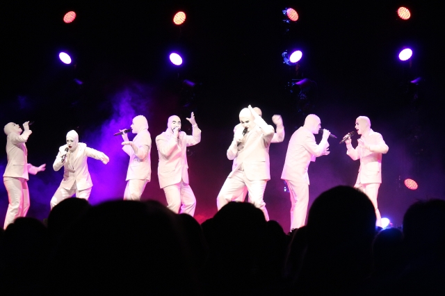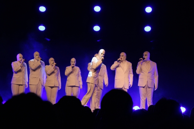 Die israelische A-cappella-Gruppe "The Voca People" begeisterte bei ihrer Vorstellung am 7. November 2014 das Publikum im Museumsquartier in Wien (Österreich, Europa). Mit ihrer galaktisch klingenden Musik und durch ihr Äußeres - komplett weiße Kleidung, weiße Schminke und knallrote Lippen - schien es fast so, als kämen Voca People tatsächlich aus einer anderen Welt. Die acht Sänger, Beatboxer, Comedy-Darsteller und Schauspieler erhielten in Wien ein gebührendes "Standing Ovation".
