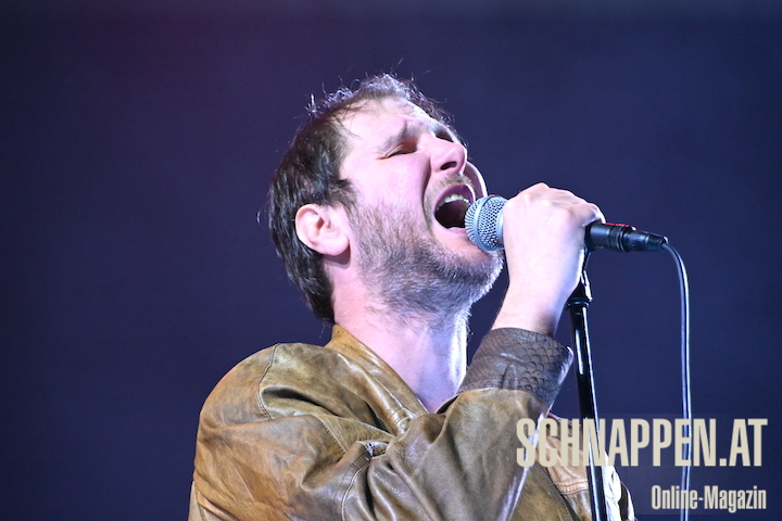 "Wo sind die Ladies? Können mal nur die Ladies aufzeigen? Die nächste Nummer ist nur für euch. Lassts euch nichts von den Oaschlöchern gefallen, never fucking ever", spornte Marco Wanda das Publikum zum Song "Jurassic Park" zum Mitsingen an.