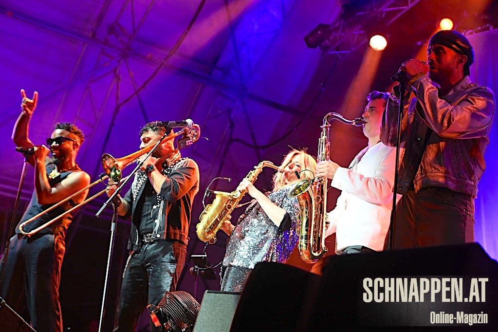 Am 5. Juli 2025 beehrte die äußerst attraktive MusikerIn im Rahmen ihrer "Hot Summer Funk Tour" das Butterfly Dance-Festival in Eisenstadt.