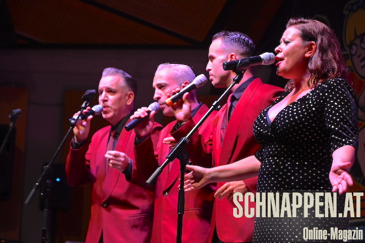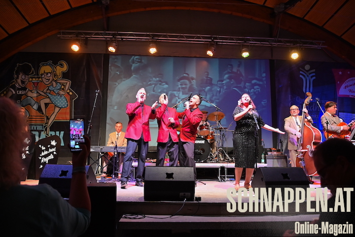 The Velvet Candles & Juke Joints Royals gastierten am 28. Juli 2023 beim Kurpark Rock 'n' Roll in Bad Sauerbrunn im Burgenland in Österreich. Mehr über