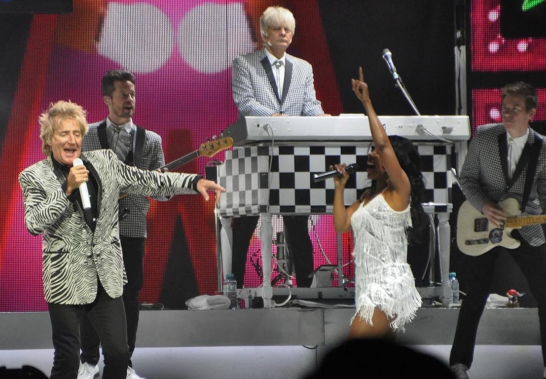 Rod Stewart mit einer Haarpracht, die noch heute an die 1985 moderne Vokuhila-Frisur erinnert. Der britische Rock- und Pop-Star, der mit seiner typisch rauen - vielleicht etwas tieferen - Reibeisenstimme seine gefühlvollen Erfolgs-Titeln singt und immer noch die Herzen seiner weiblichen Fans zum Schmelzen bringt.