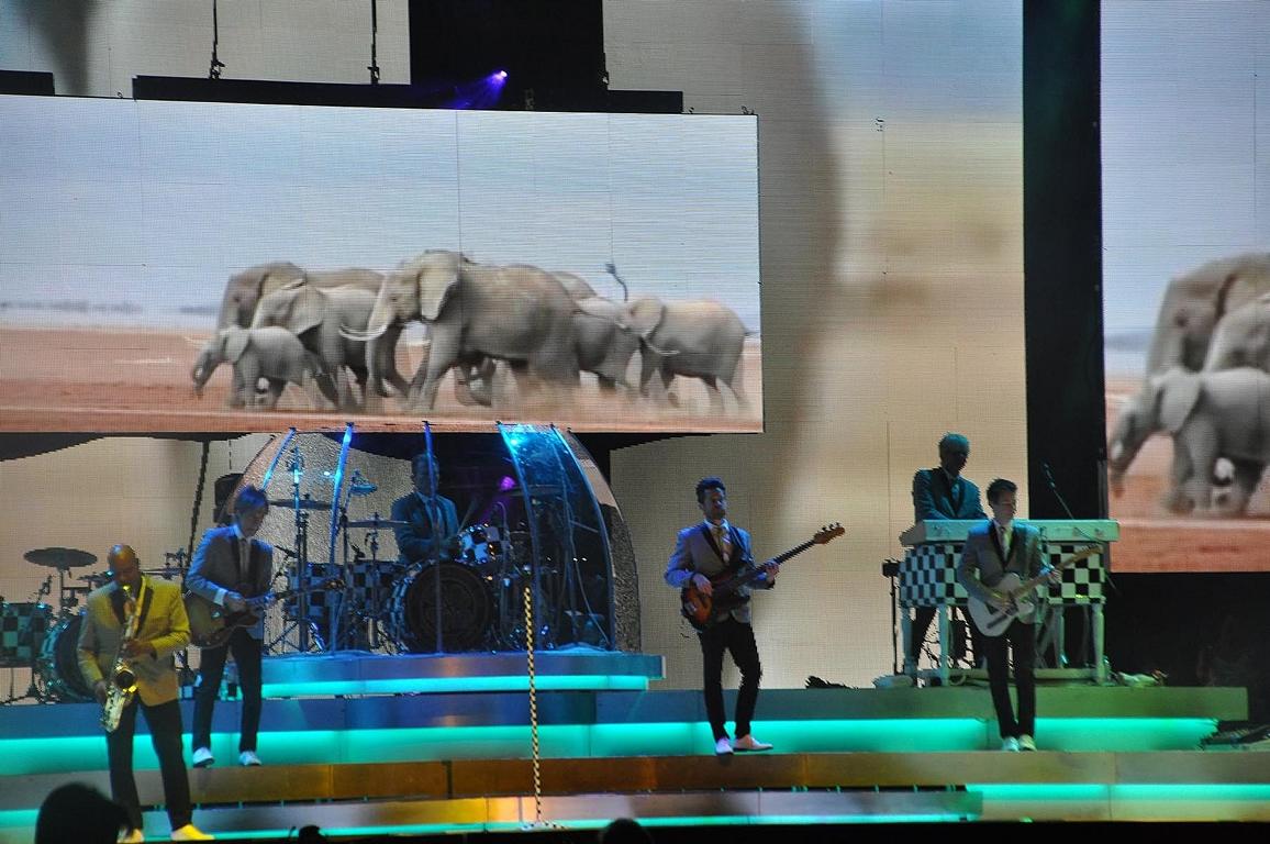 Das Publikum tobte, als ihr Star am 9.11.2016 in schwarzen Jeans und Zebralook-Jacket die Bühne in der Stadthalle Wien (Österreich) betrat. Rod Stewart, der mit seinen 71 Jahren aus der Ferne wirkte, als wären die vergangen 20 Jahre fast spurlos an ihm vorübergegangen.