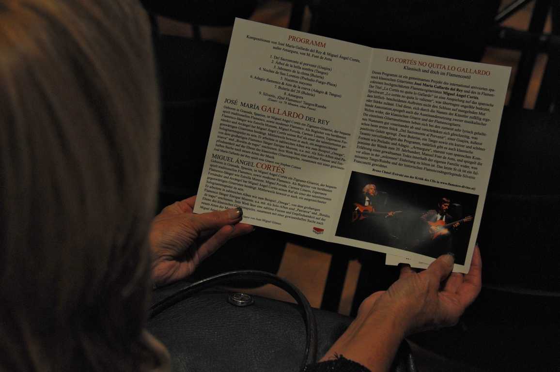 Das Programm "Lo Cortés no quita lo Gallardo", klassisch und doch im Flamencostil ist ein gemeinsames Projekt der spanischen Weltklassegitarristen José Maria Gallardo del Rey und des Flamencogitarristen Miguel Ángel Cortés. Der Titel "Lo Cortés no quita lo Gallardo" sei, wie im Programmheft erklärt wird, eine Anspielung auf das spanische Sprichwort "Lo Cortés no quita lo valiente", was bedeutet, dass sich höfliches und bescheidenes Auftreten nicht auf mangelnden Mut oder Stärke ableiten lässt.