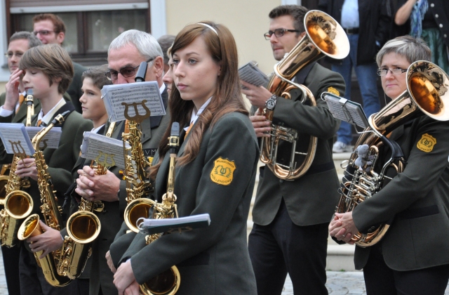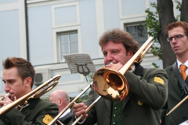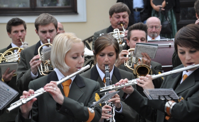 Die Kapelle des Musikvereines Müllendorf beim internationalen Stifungsfest der europäischen Weinritterschaft am 20. Oktober 2012 in Eisenstadt, Burgenland, Österreich