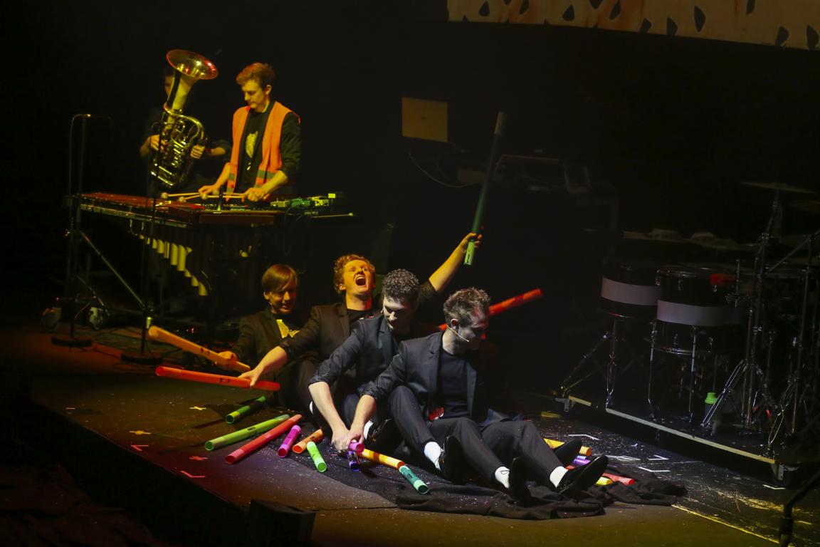 Das Publikum zeigte sich beim Louie's Cage Percussion-Auftritt amüsiert und dankte den Musikern Sebastian Brugner, Dominic Feichtinger, Krištof Hrastnik, Florian Klinger, Joachim Murnig und Lucas Salaun mit heftigem Applaus.