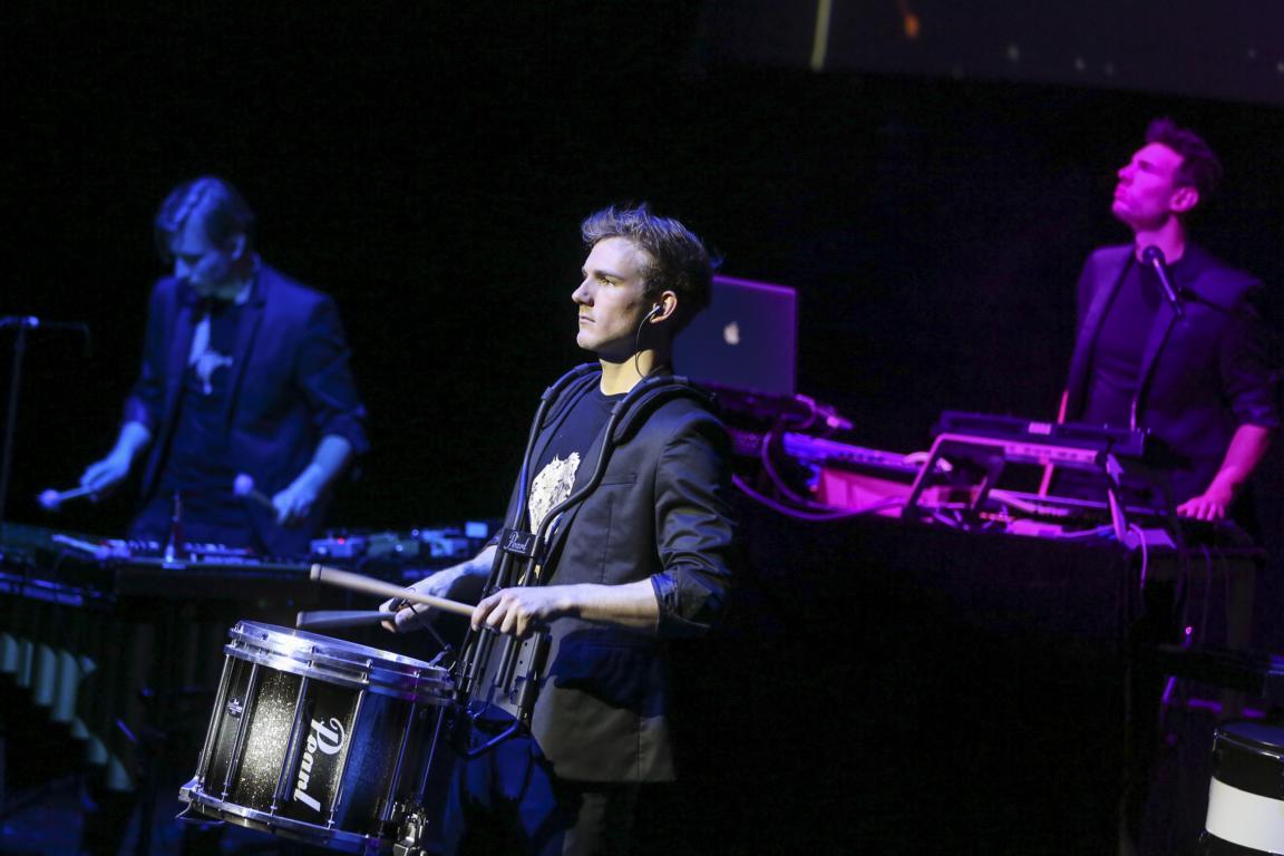 Bei den sehr modernen Dubstep- und Drum & Bass Elementen verknüpften die Musiker u.a. E-Drums und Synths mit echten Instrumenten wie Marimba, Vibra und dem Glockenspiel.