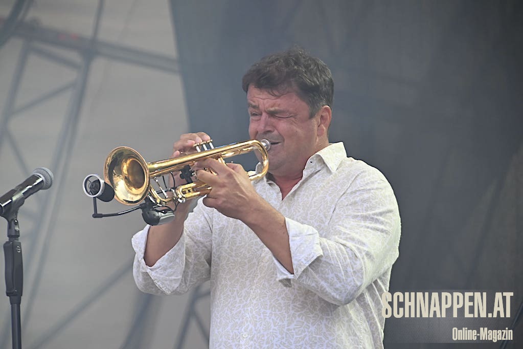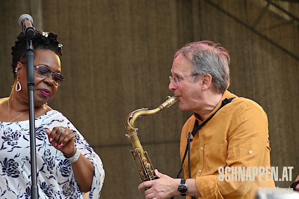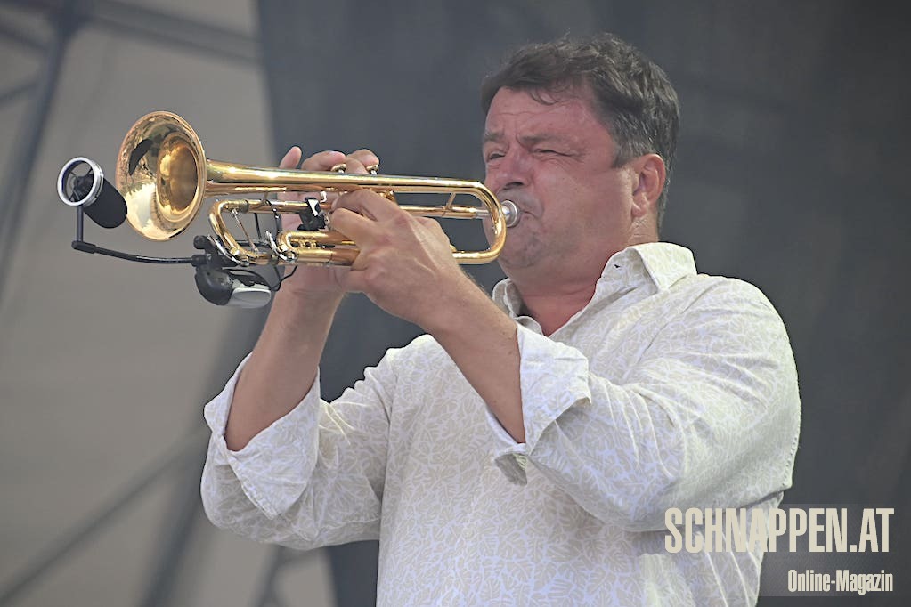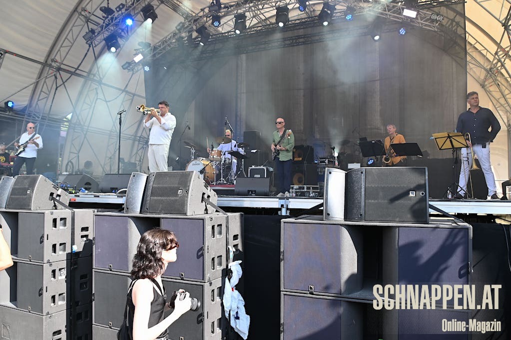 Mit einer Mischung aus Soul, Funk, R&B, Acid Jazz und Smooth Jazz brachten die Count Basic-Musiker die FestivalbesucherInnen bei wunderbarem Sommerwetter zum Tanzen.