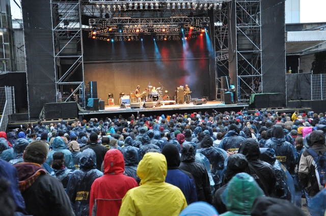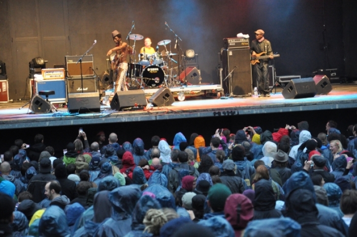 Trotz Regen war die Stimmung in der gut gefüllten Open Air-Arena hervorragend. Das Publikum dankte dem Schöpfer des "Blufunk-Sound" für den funkigen Soul, den er durch seine Gitarren-Riffs mit afrikanischem Blues und tanzbaren Grooves vermischte, mit heftigem Applaus.