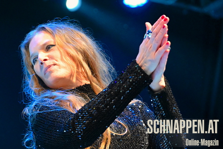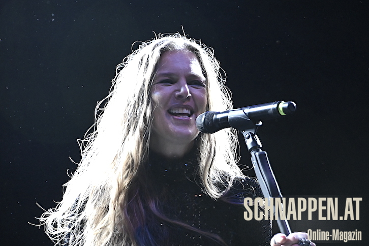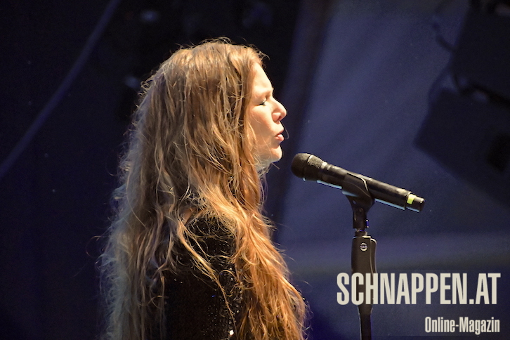 Zwischen den Songs scherzte die Musikerin und sprach unter anderem über den österreichischen Rotwein und Weißwein. Natürlich wurde ihr prompt ein "Achterl Rot" und ein "Achterl Weiß" auf der Bühne kredenzt und sie ließ es sich sichtlich gut schmecken. Mehr über