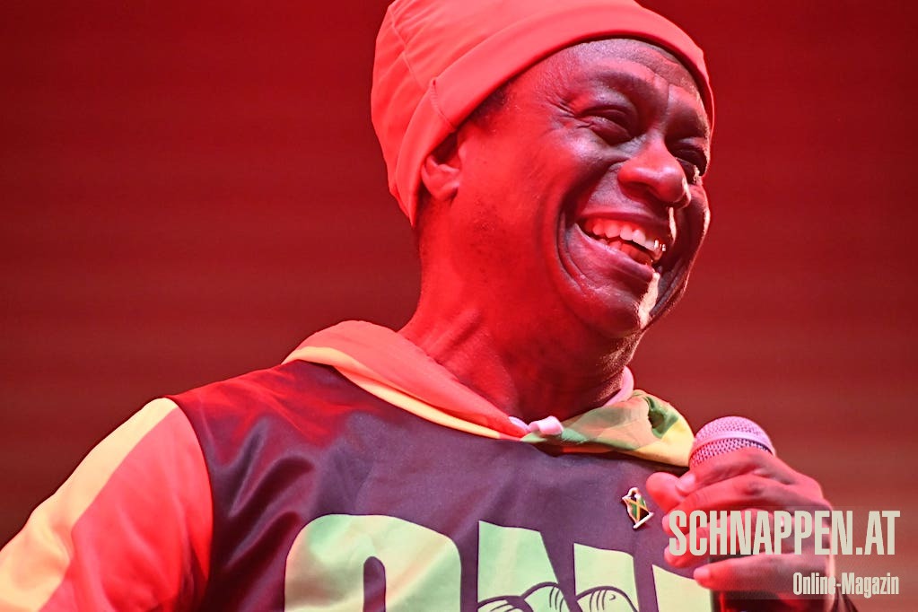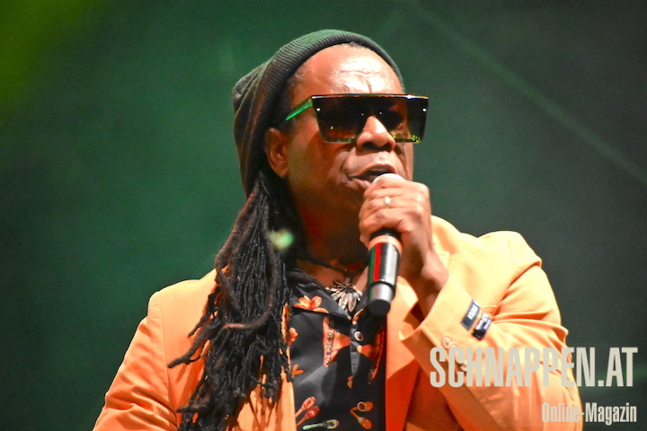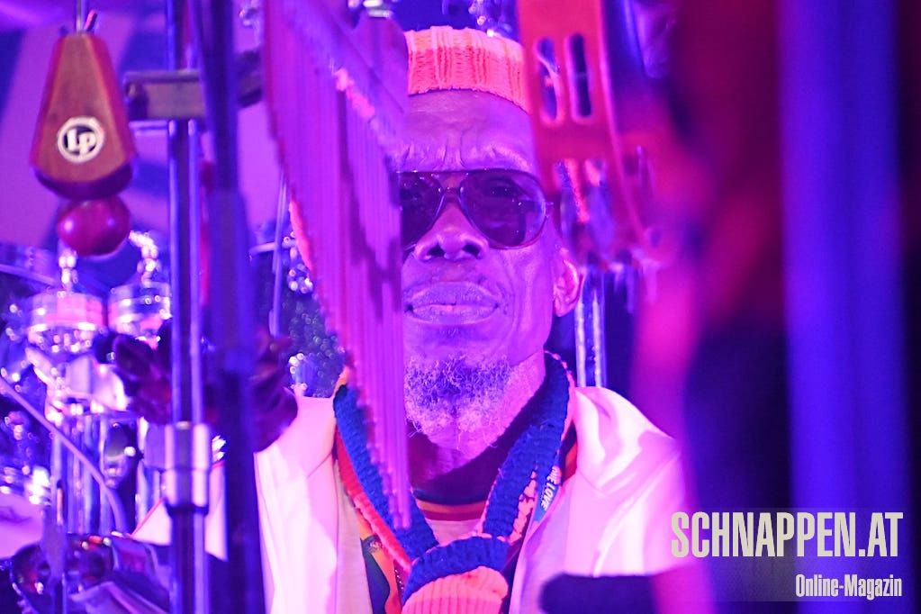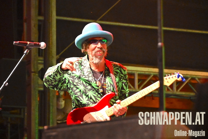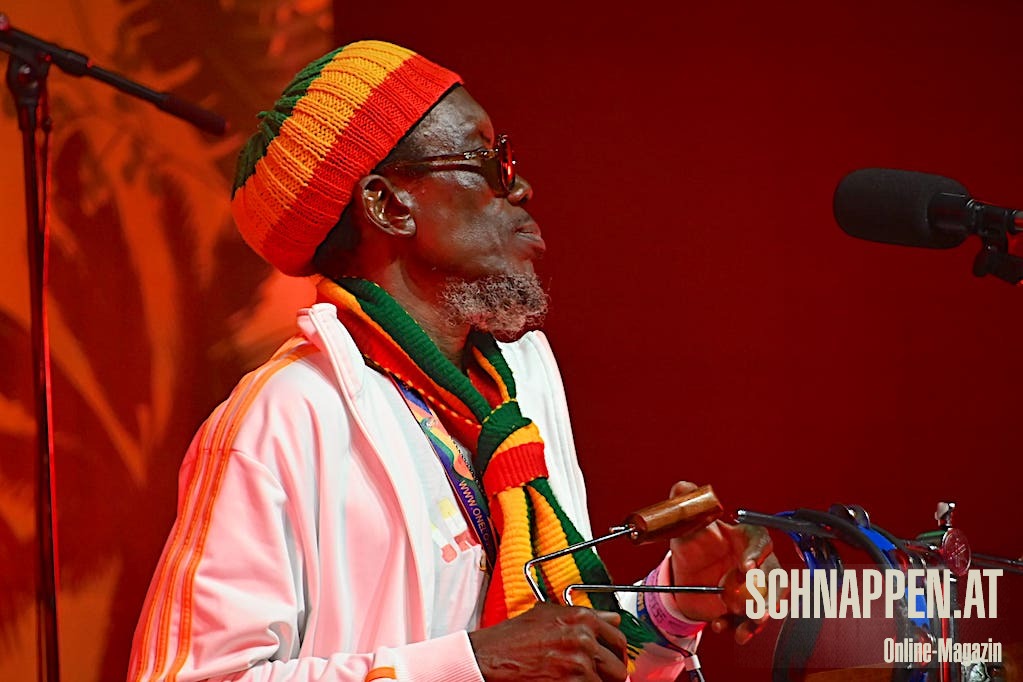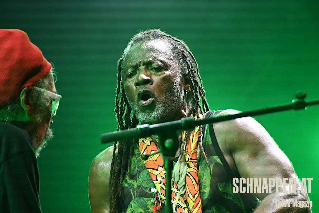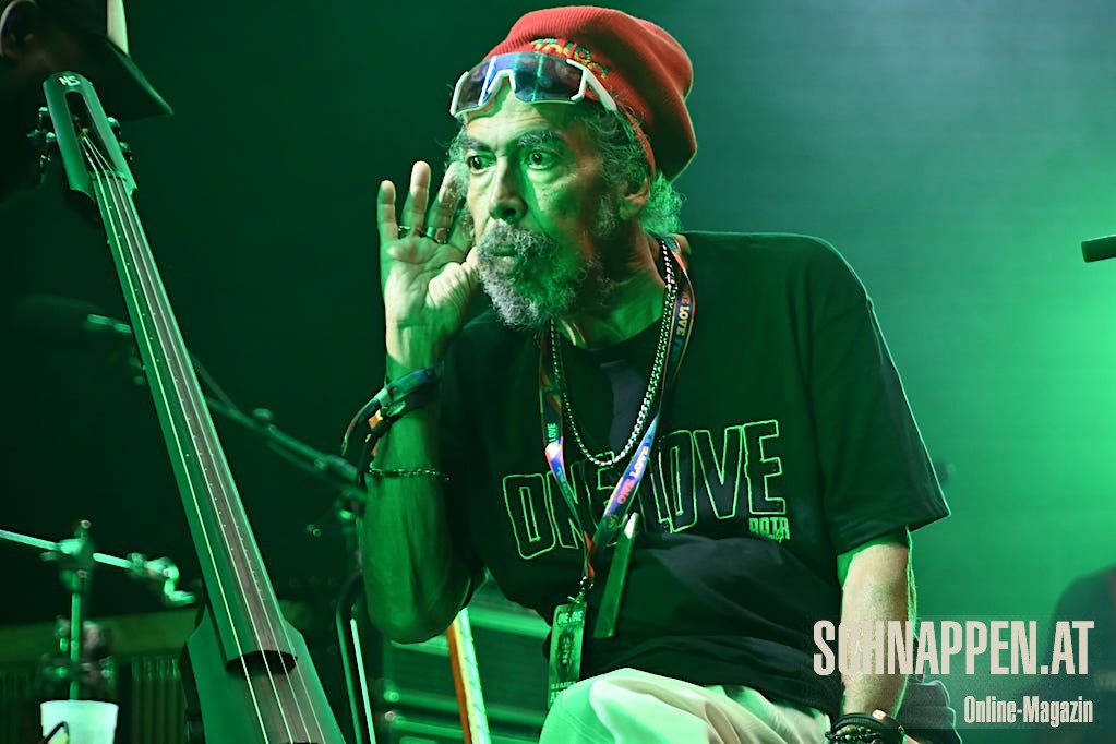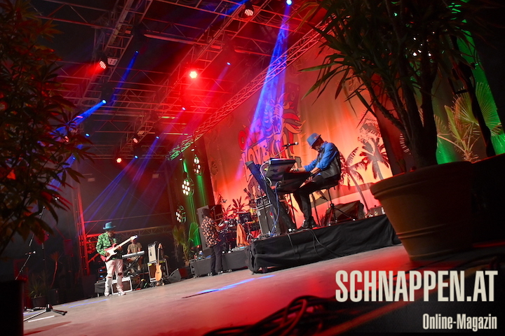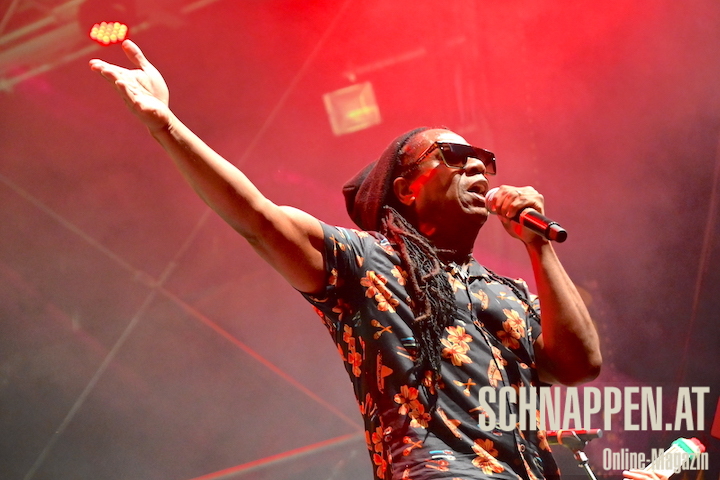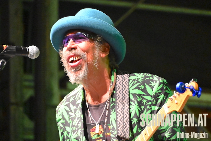 Der 1950 geborene Bandmitgründer Stephen Coore ulkte beim Auftritt, lachte viel und hatte sichtlich Spaß auf der Festivalbühne in Wiesen.