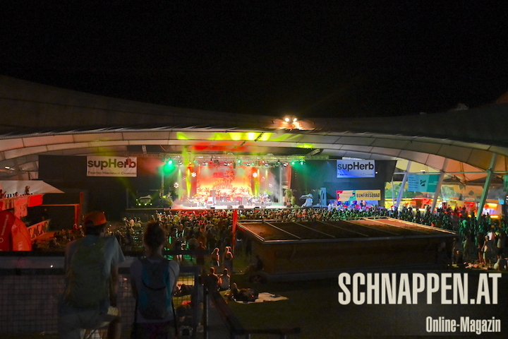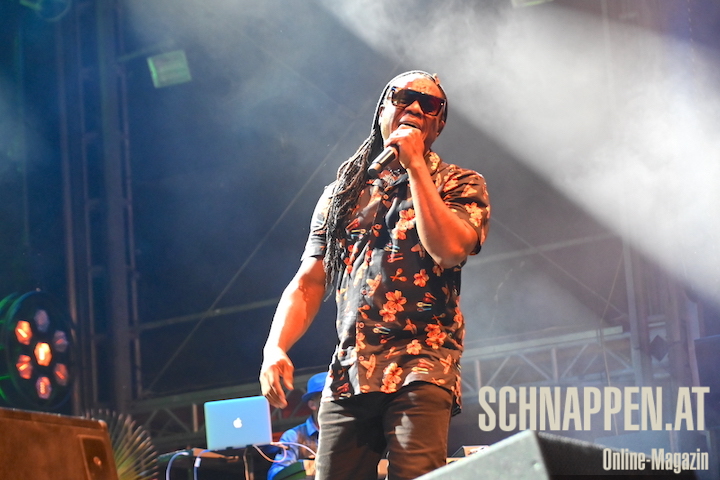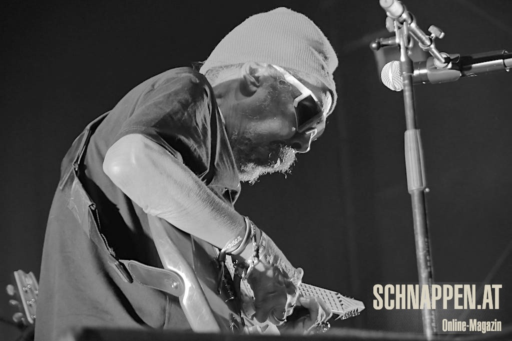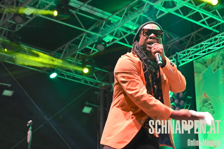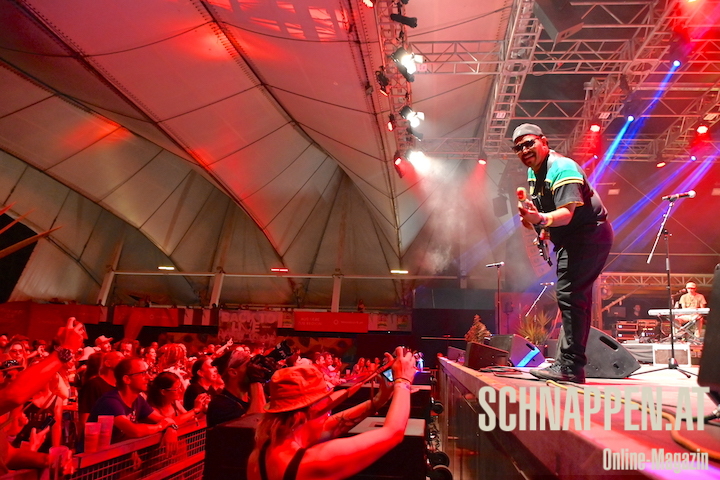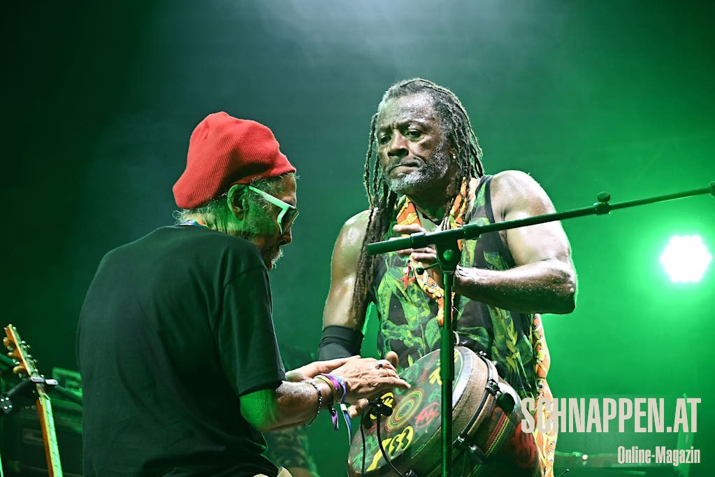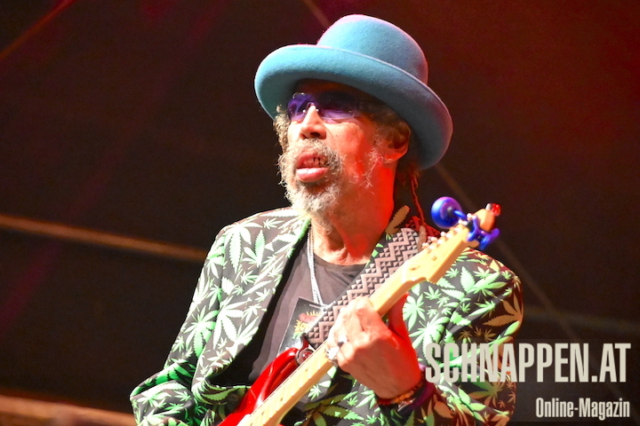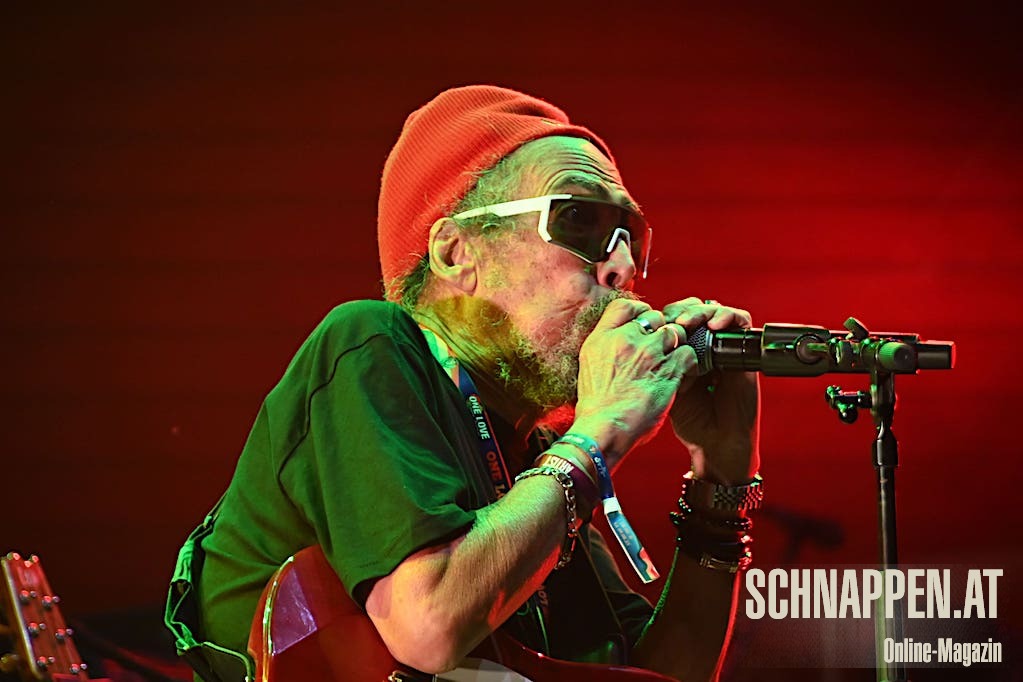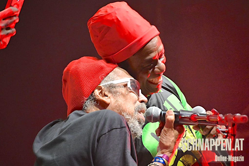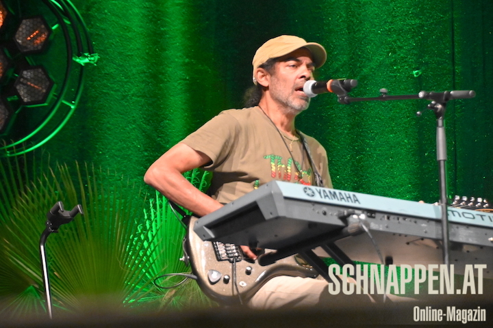 Der 1950 geborene Bandmitgründer Stephen Coore ulkte beim Auftritt, lachte viel und hatte sichtlich Spaß auf der Festivalbühne in Wiesen.
