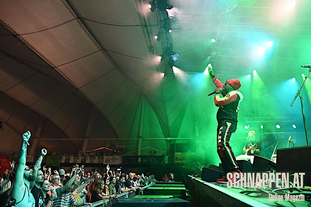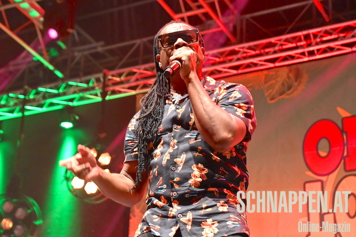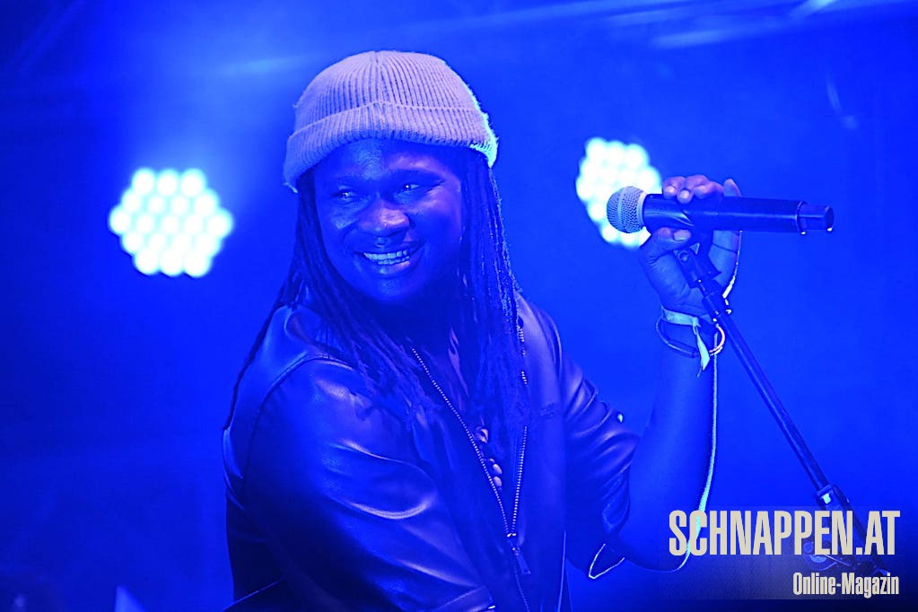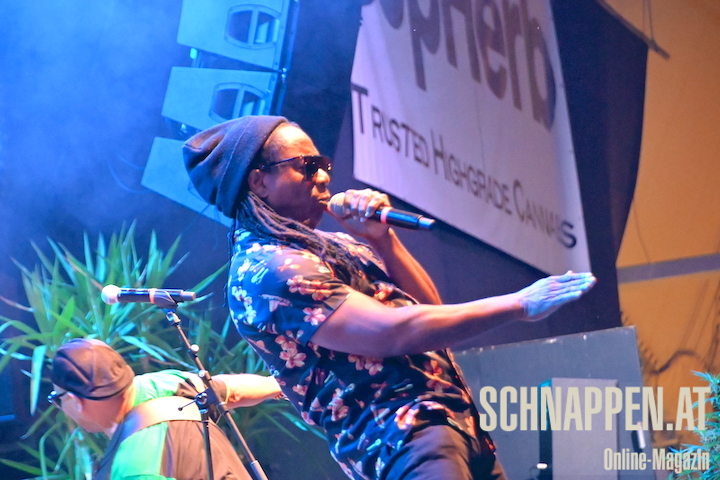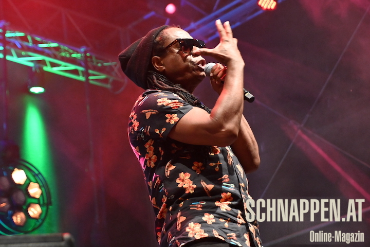 Neben dem grandiosen Sänger Aj Brown, betrat auch Kumar Fyah, der kurz zuvor einen Solo-Auftritt in Wiesen lieferte, die Bühne und sang einige Songs mit der "Third World"-Band. (Kumar Fyah, der Reggaesänger in Wiesen - hier)