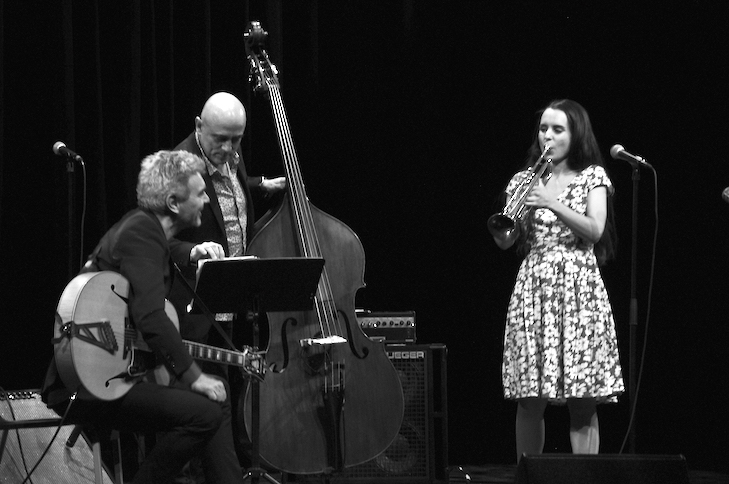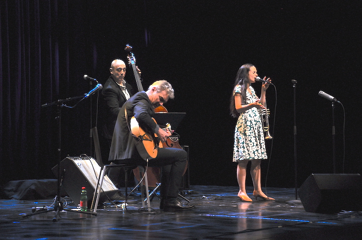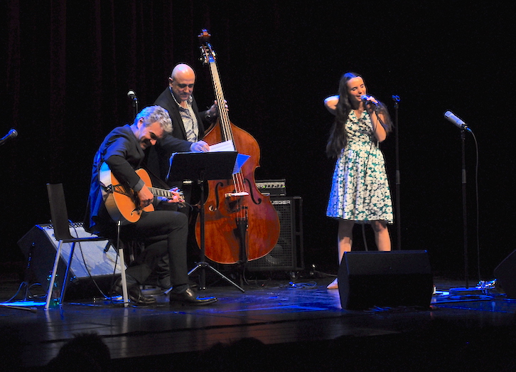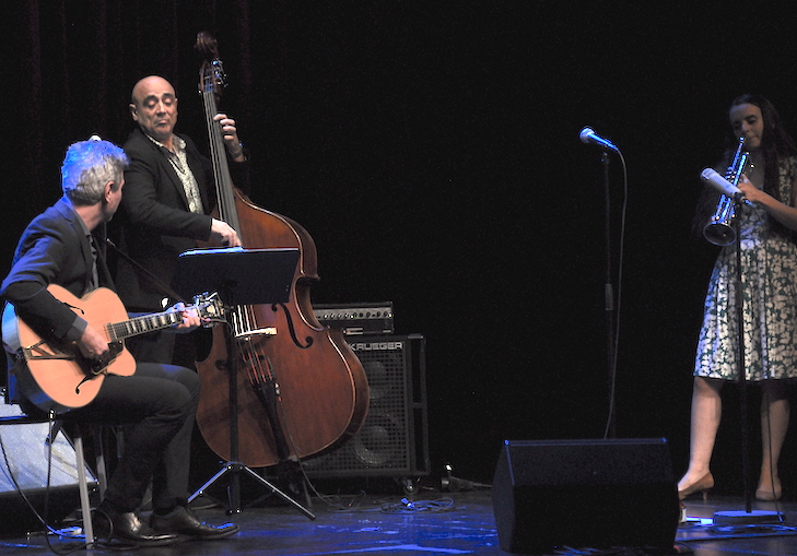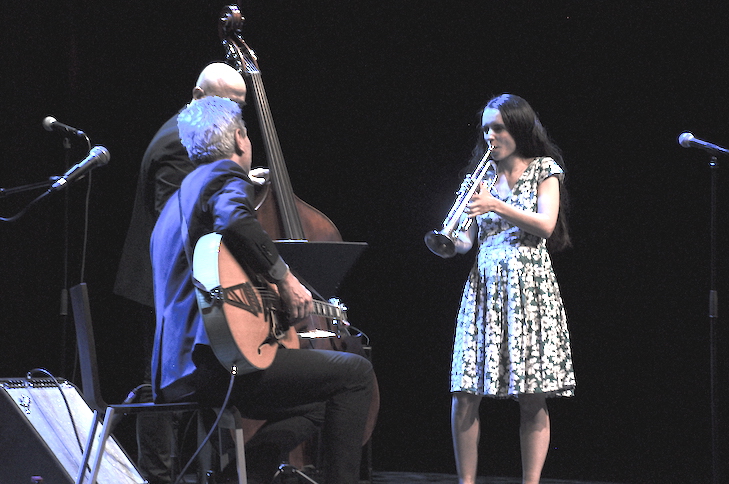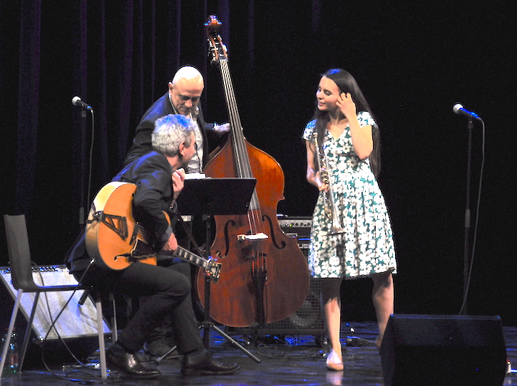 Das sehr aufmerksame und jazzinteressierte Publikum lauschte dem großartigen Konzert der Sängerin und Trompeterin Andrea Motis, die gemeinsam mit dem Gitarristen Josep Traver und ihrem Mentor Joan Chamorro am Kontrabass, der in Spanien auch ein Jazzorchester leitet, auf der Bühne stand. Mehr über