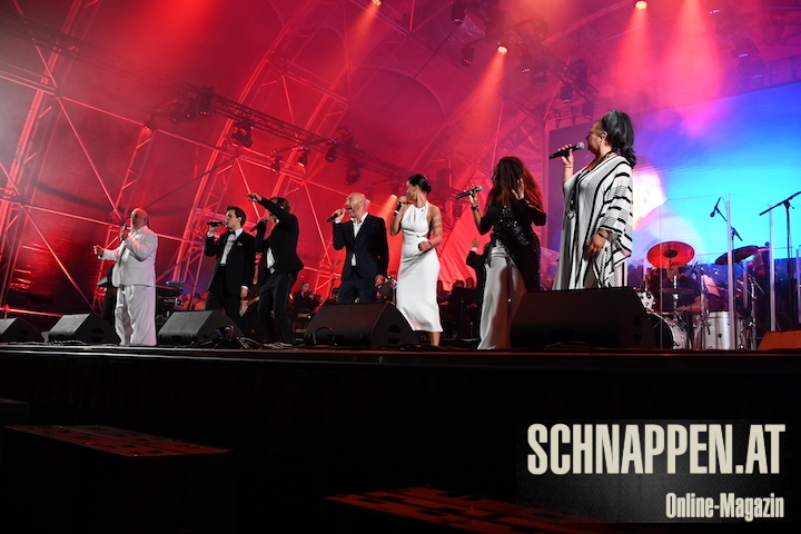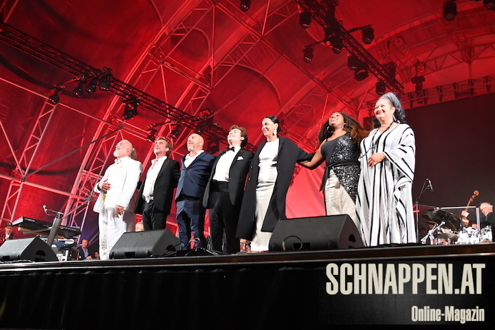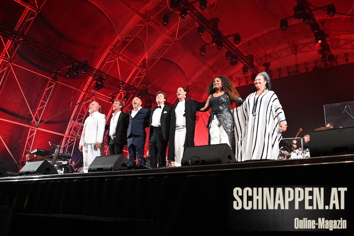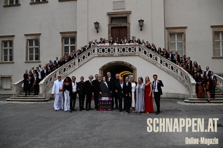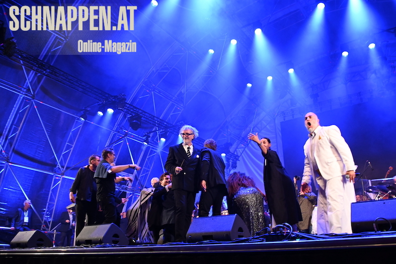 100 Orchester-MusikerInnen, die Falco-Originalband und SängerInnen