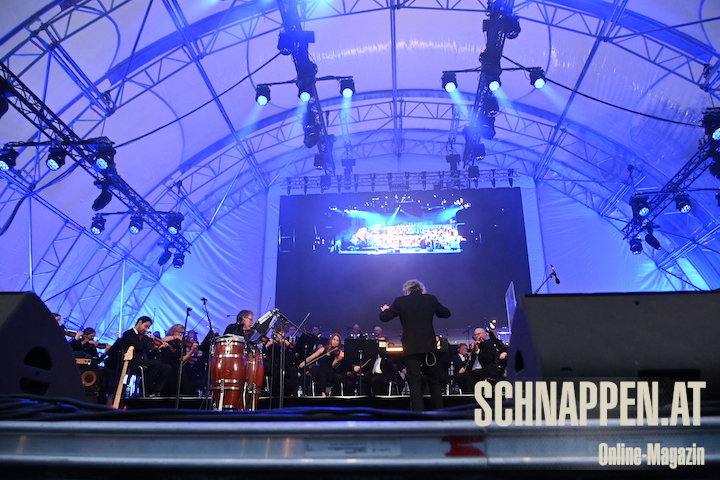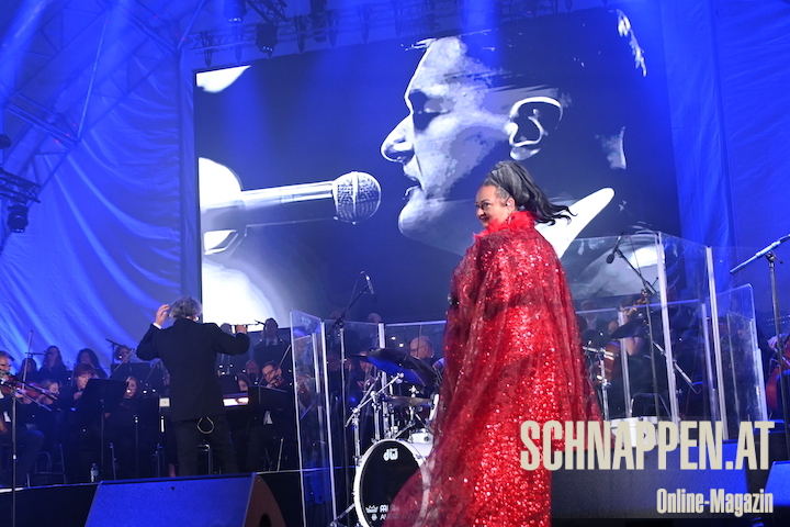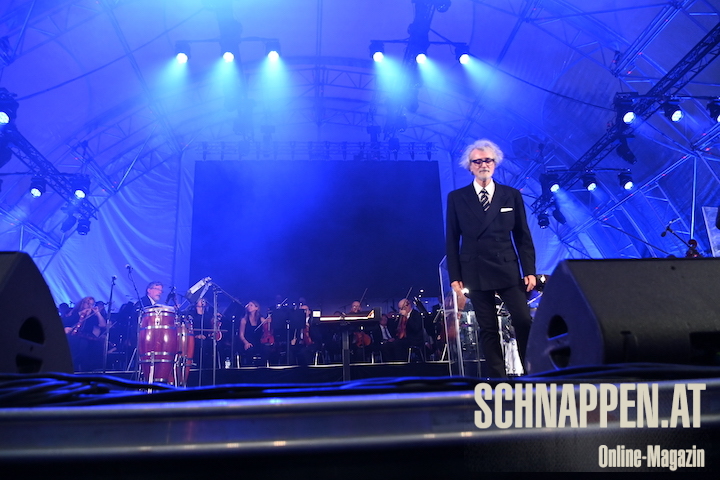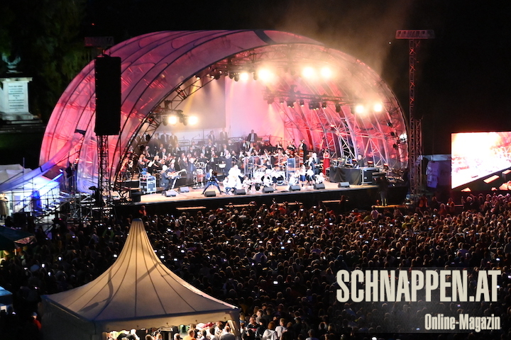 Arrangiert vom Stadtmusikdirektor Raoul Herget gastierte ein Orchester mit 100 MusikerInnen, die Falco-Originalband von damals und, anstelle von Falco, die SängerInnen Ana Milva Gomes, Tini Kainrath, Edita Malovčić, Roman Gregory, Georgij Makazaria und Andie Gabauer.