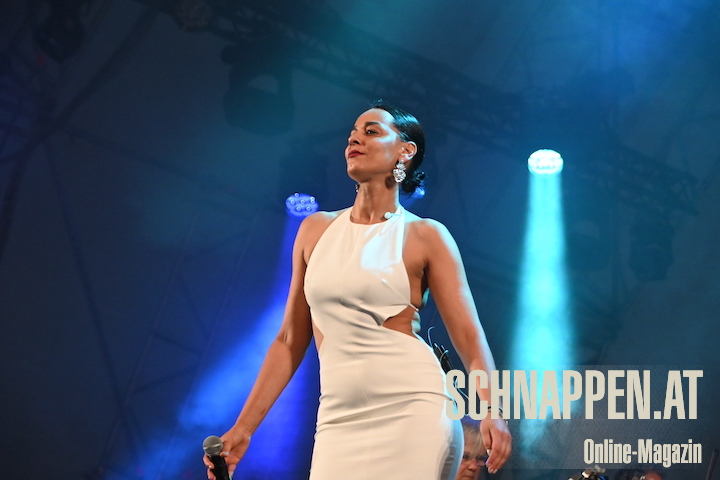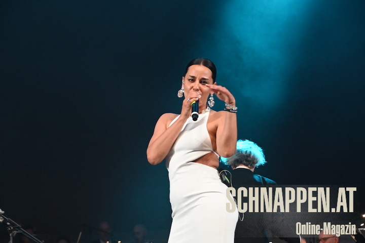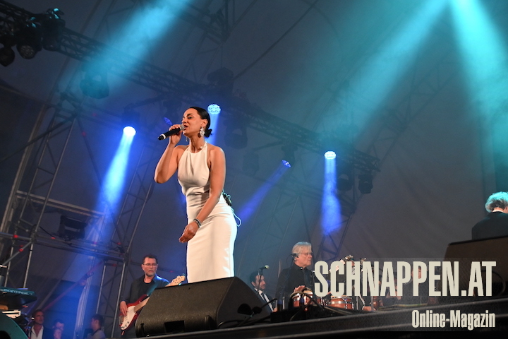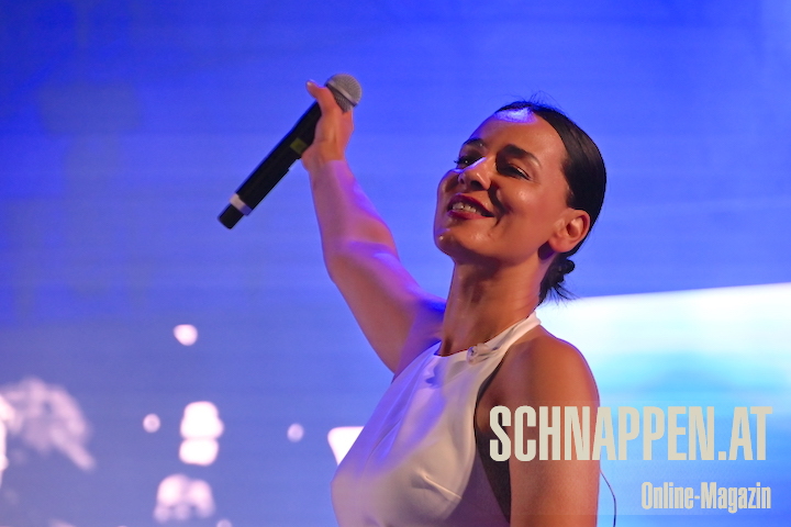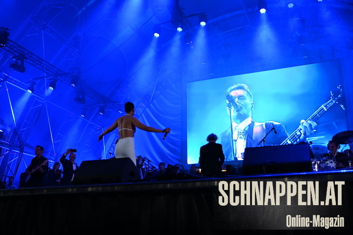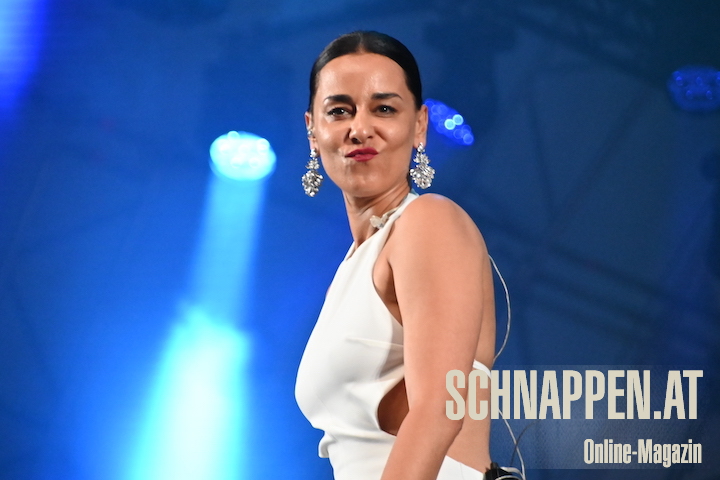 Vor etwa 12.000 Menschen, so schätzte der Veranstalter, die Stadtgemeinde Wiener Neustadt die Besucher-Zahl, brachte Edita Malovičić einige der großen Falco-Titeln dar, die Falco bei seinem legendären Auftritt im Jahr 1994 am Wiener Neustädter Domplatz vor 10.000 Menschen sang.
